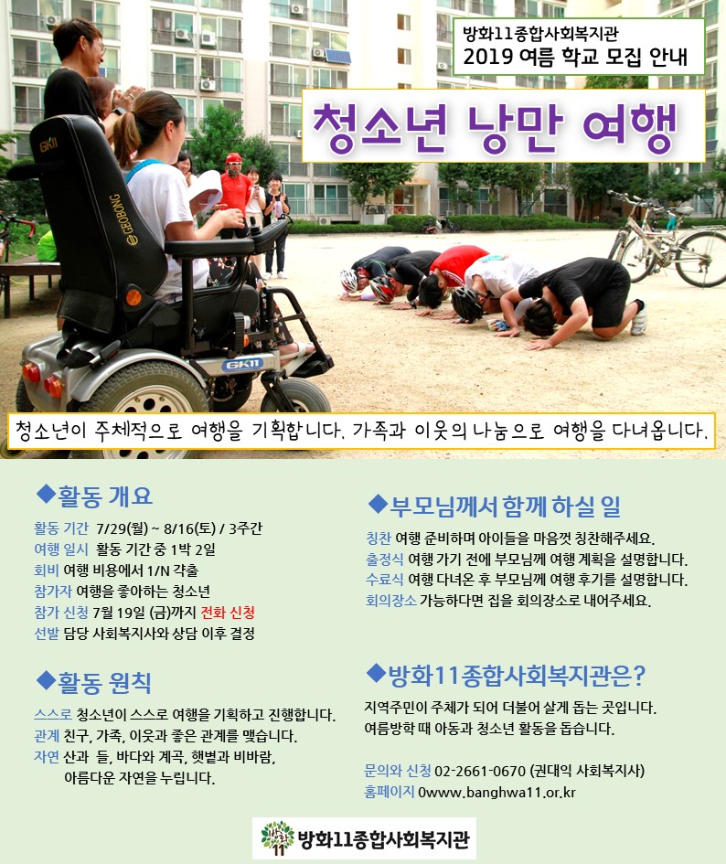 2019 여름 학교 모집 - 청소년 낭만 여행
