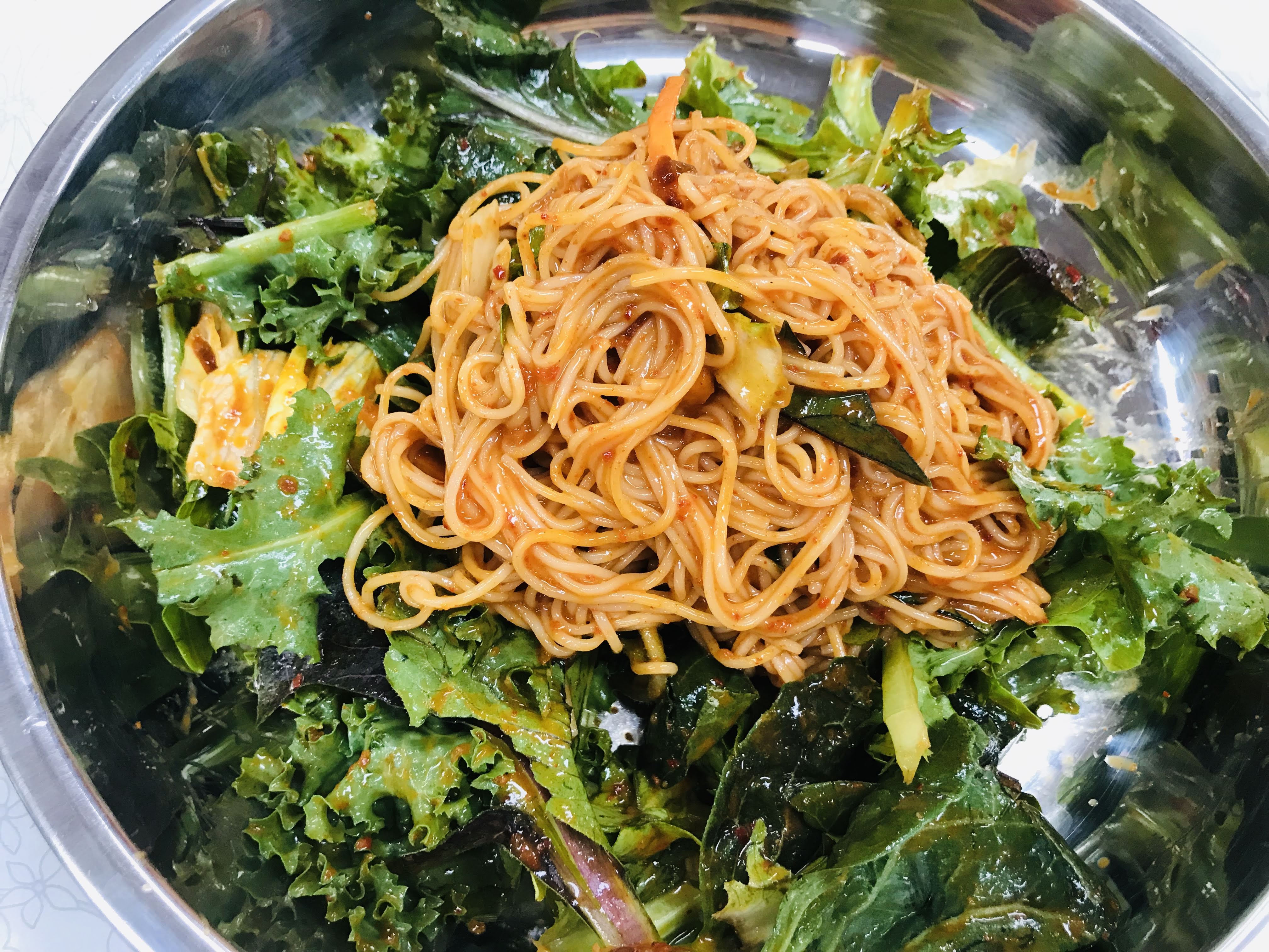채소와 고기, 참깨 드레싱을
