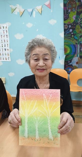 어르신들이 그림 하나 하나에 서로 다른 표정을 보여주셨습니다.