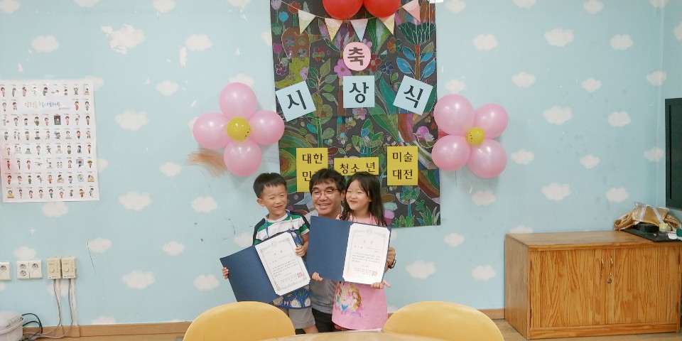 <2시부 수상자 2명으로 수업시간에 친구들과 부모님과 오빠의 축하를 받았어요>