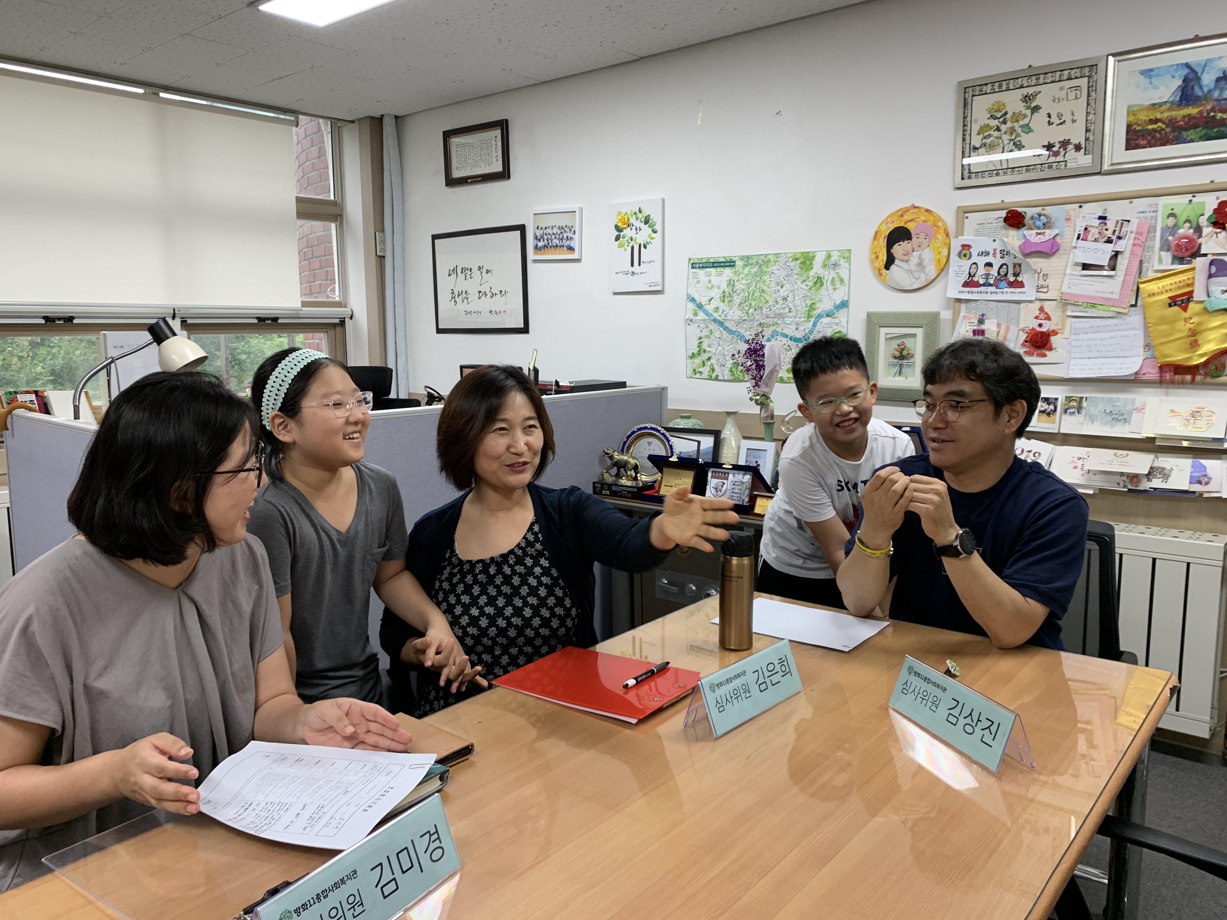 아이들에게 긴장감을 주고 솔직한 이야기를 듣고자 김상진 관장님, 김은희 부장님, 김미경 과장님께 면접관 부탁드렸습니다.