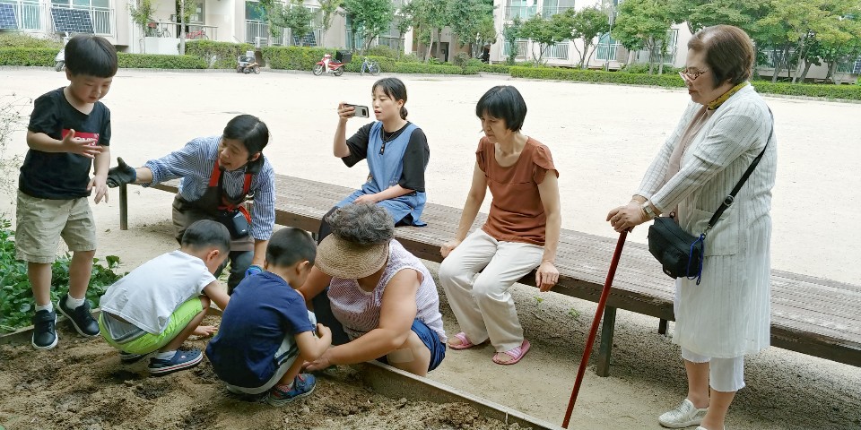 [풀꽃향기 나눔 캠페인] 꼬마도시농부학교에서는 원아들과 할머니들이 친구랍니다.