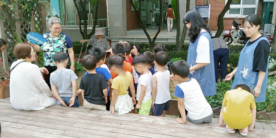 원아들과 친구가 된 풀꽃향기 할머니 할아버지들은 참 행복합니다.