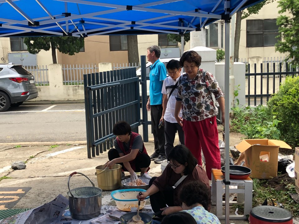 오고 가는 주민들 중 도와주시는 분도 계셨고, 맛있게 김치전, 부추전 드시고 가시는 어르신,
