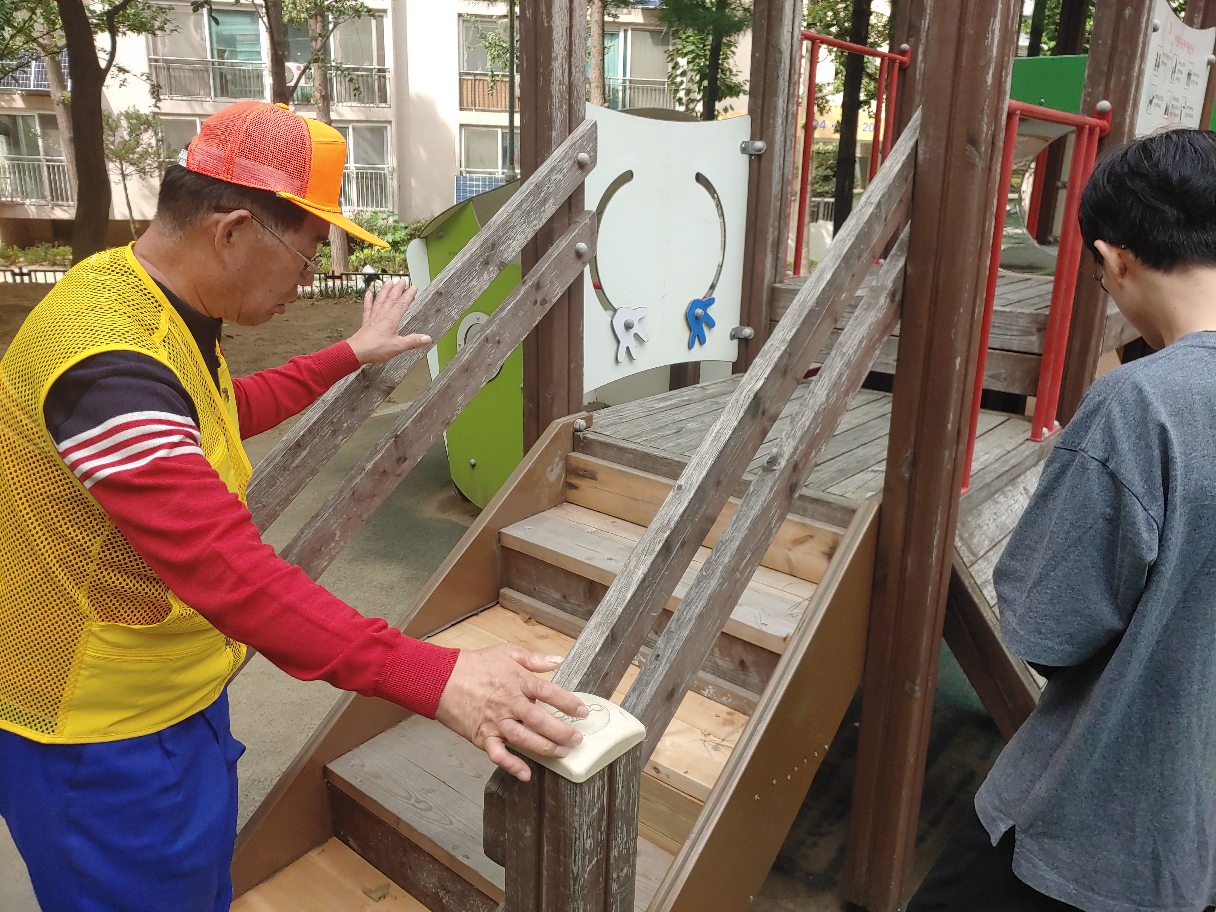 복지관 옆 놀이터 담당이 누구인지 물으셨습니다.