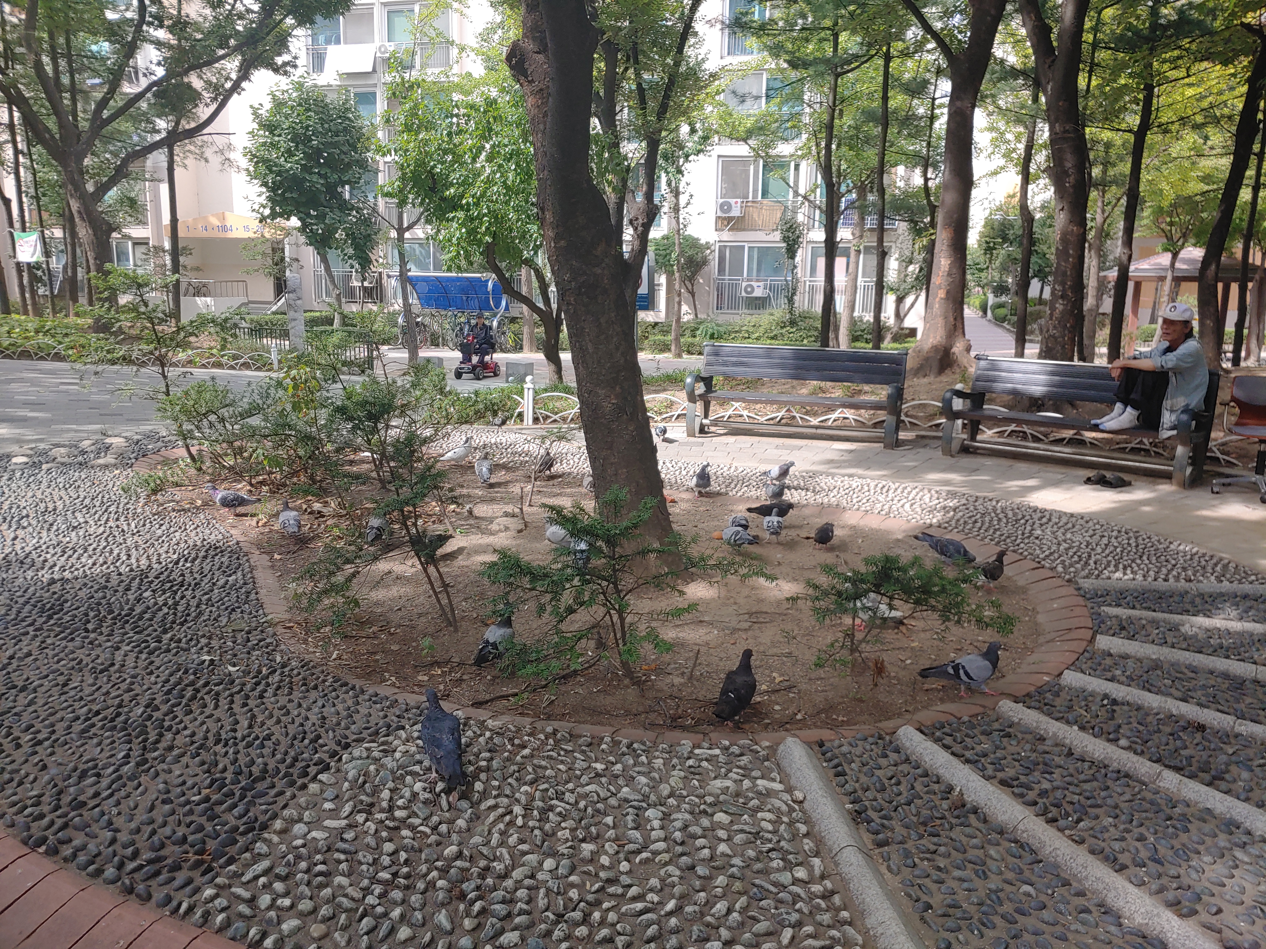 밥을 주시는 주민도 있고, 비둘기 때문에 불편하다는 분도 많습니다.