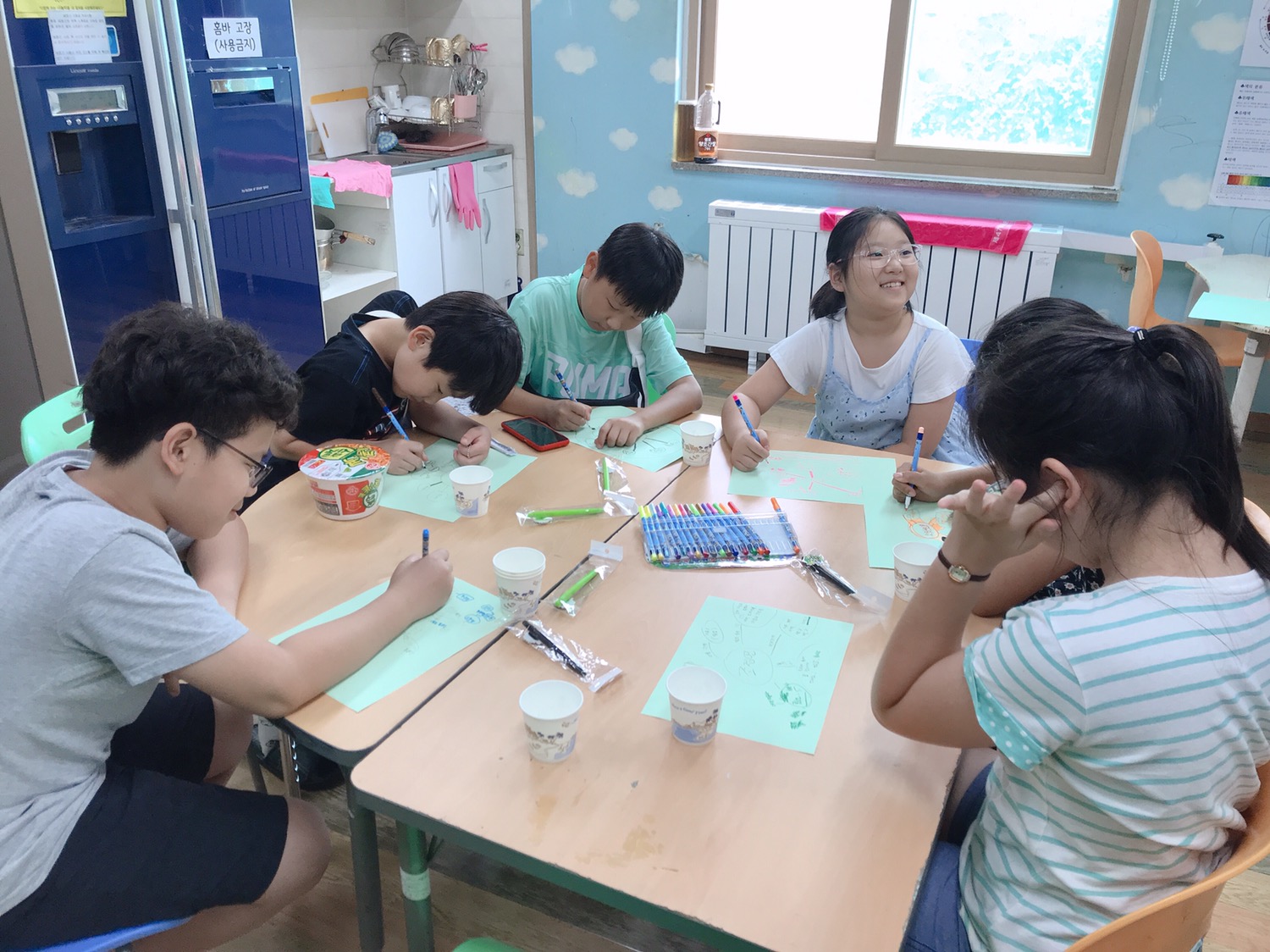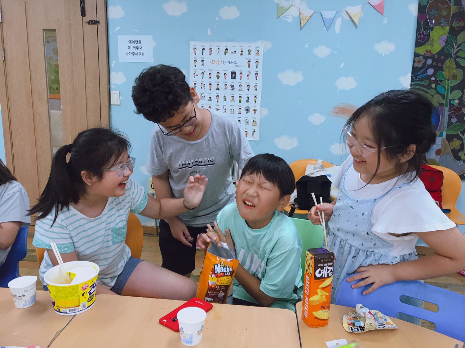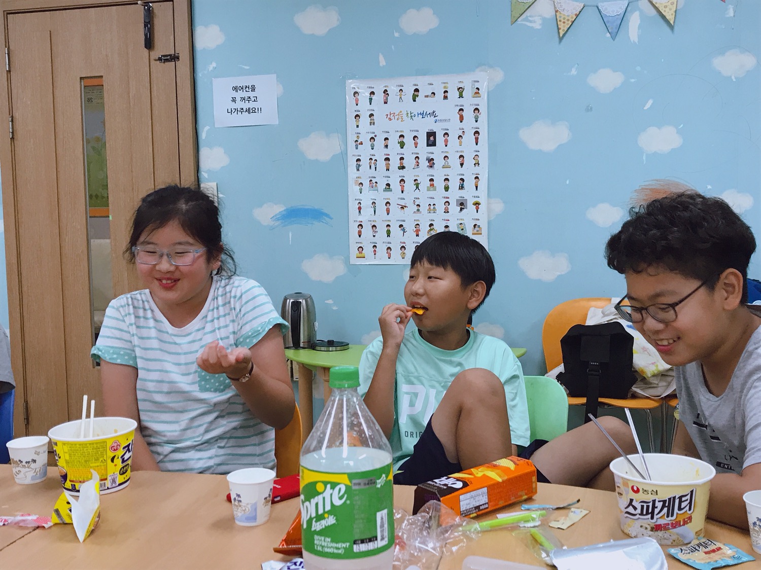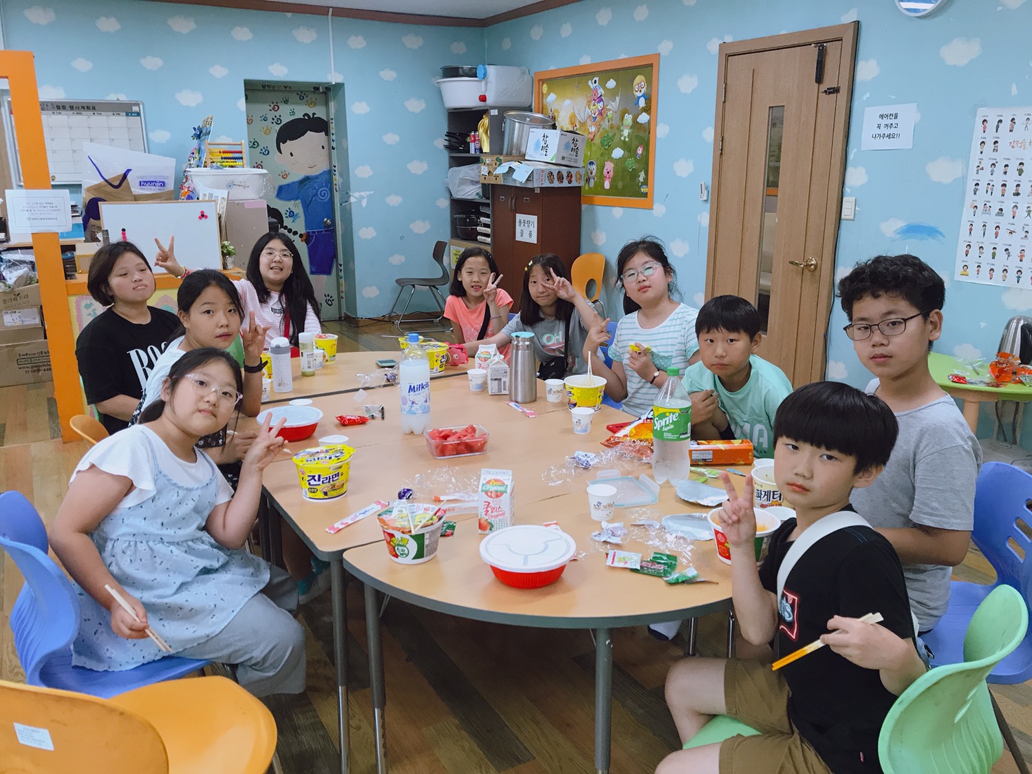 활동평가 하고 아이들하고 라면 파티 했습니다.
