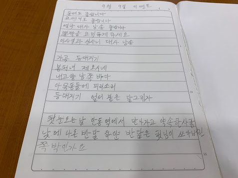 활동들을 직접 적어오시기도 했습니다.