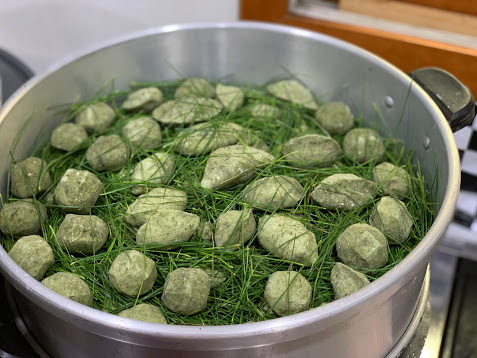 주방에서 송편을 만드는 동안