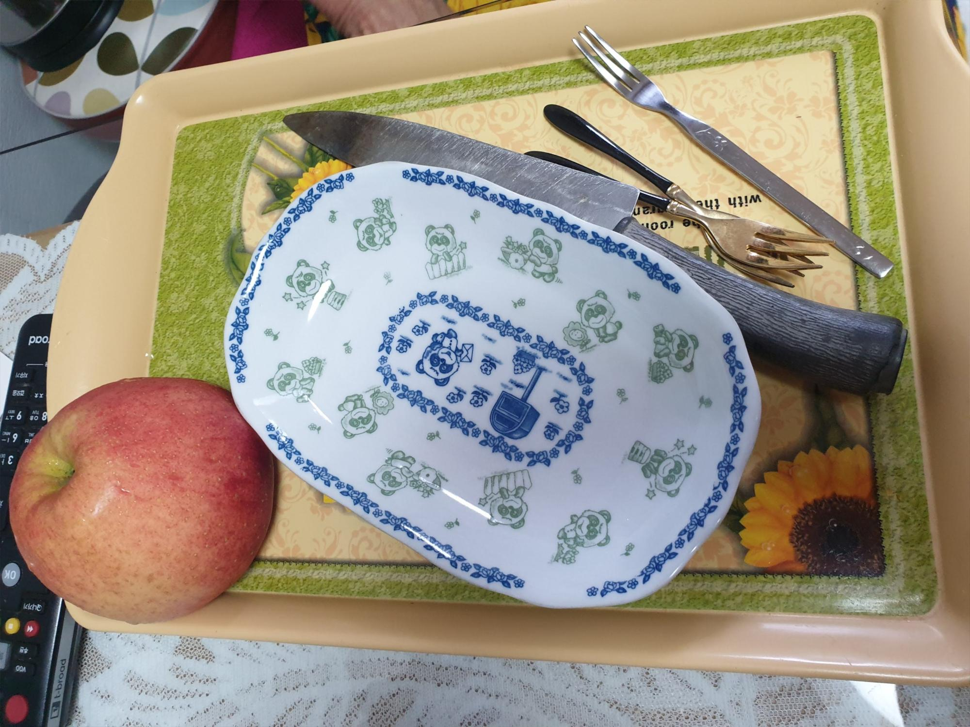 집에 있는 사과를 깎아 주셨습니다.