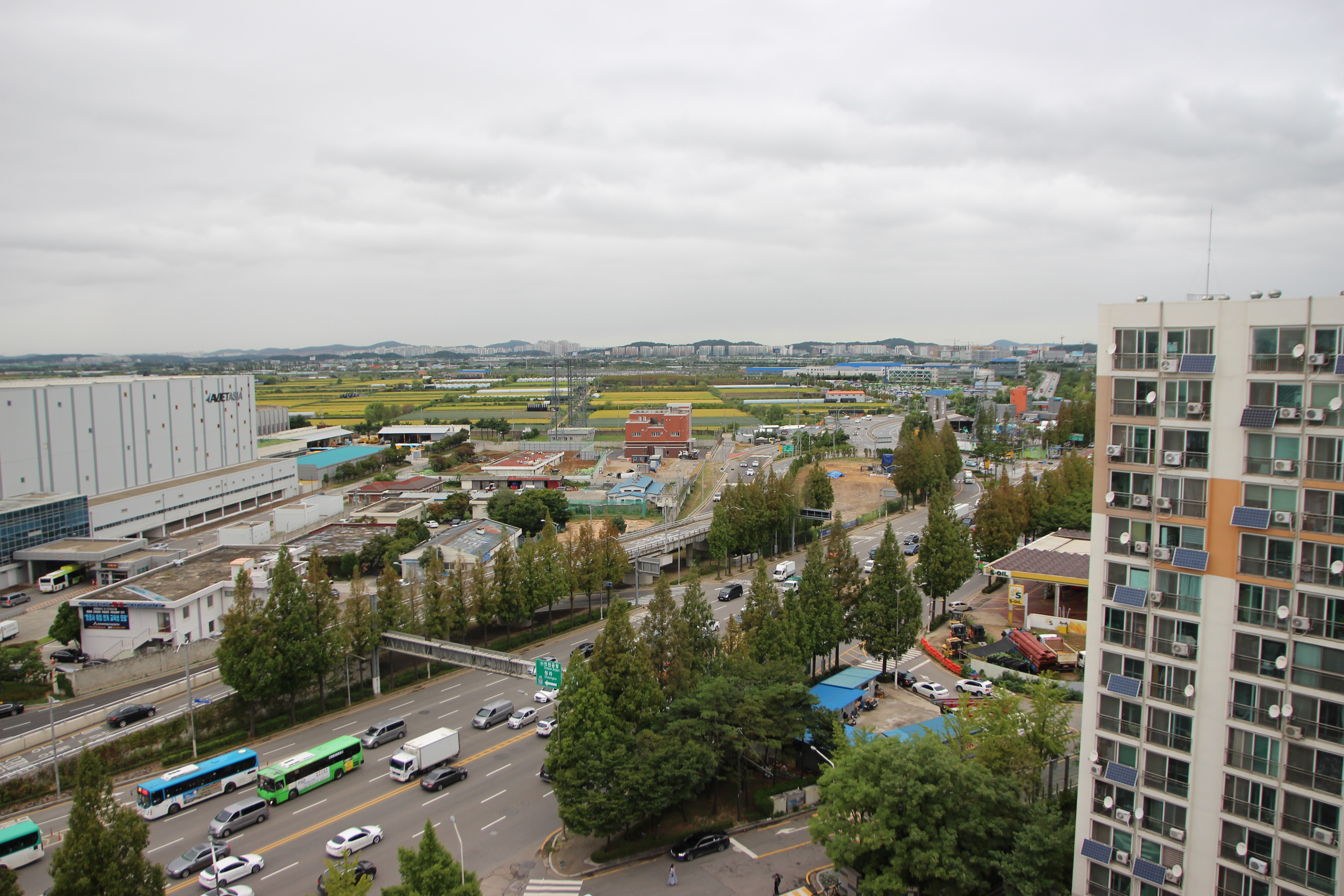 아파트 꼭대기 층에 올라서면 멋진 풍경이 펼쳐집니다.