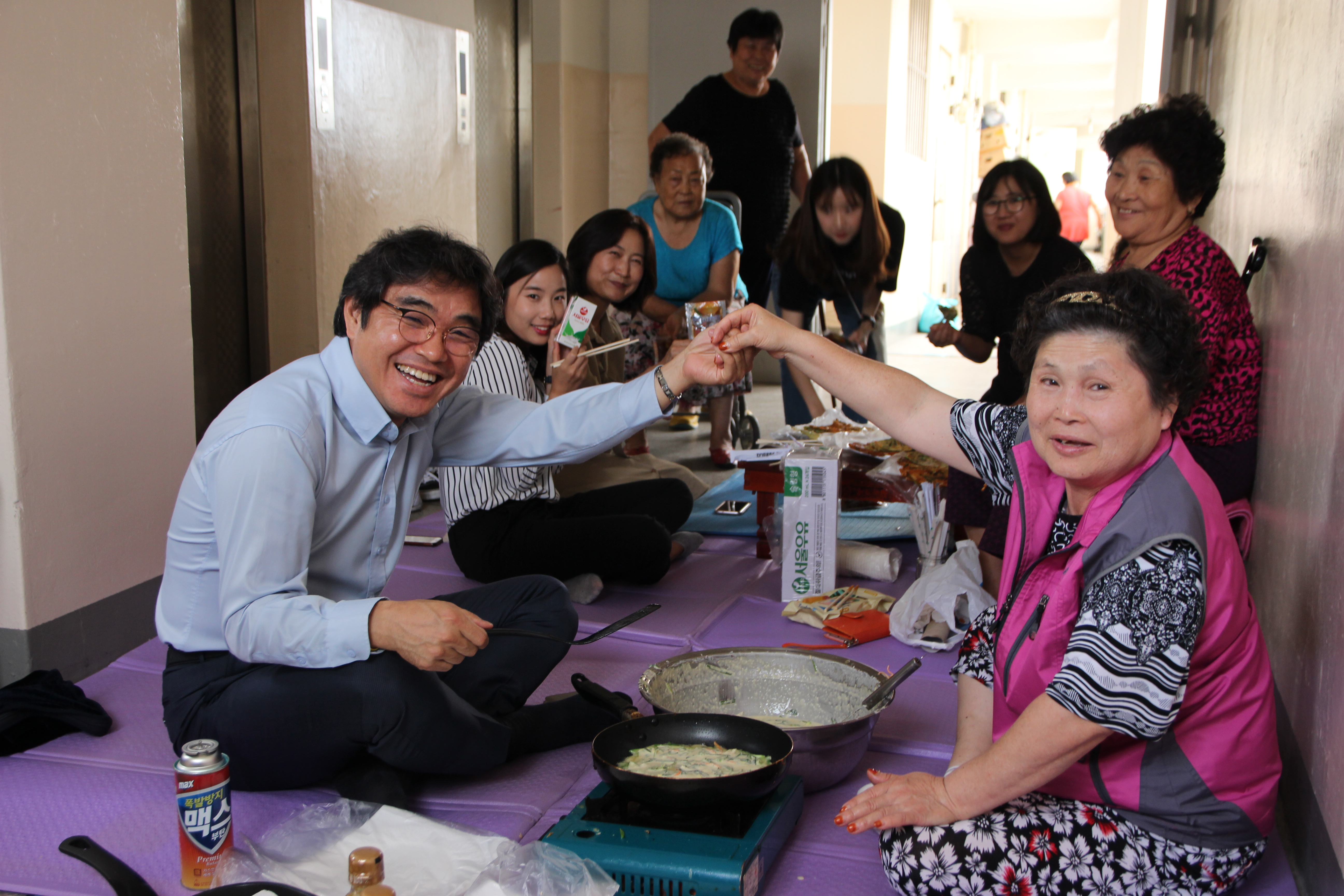 지난해 하반기에 추석 잔치와 수육 잔치를 진행했습니다. 아파트 곳곳을 다니며 이웃과 부침개와 수육 나눠 먹자고 제안했습니다.