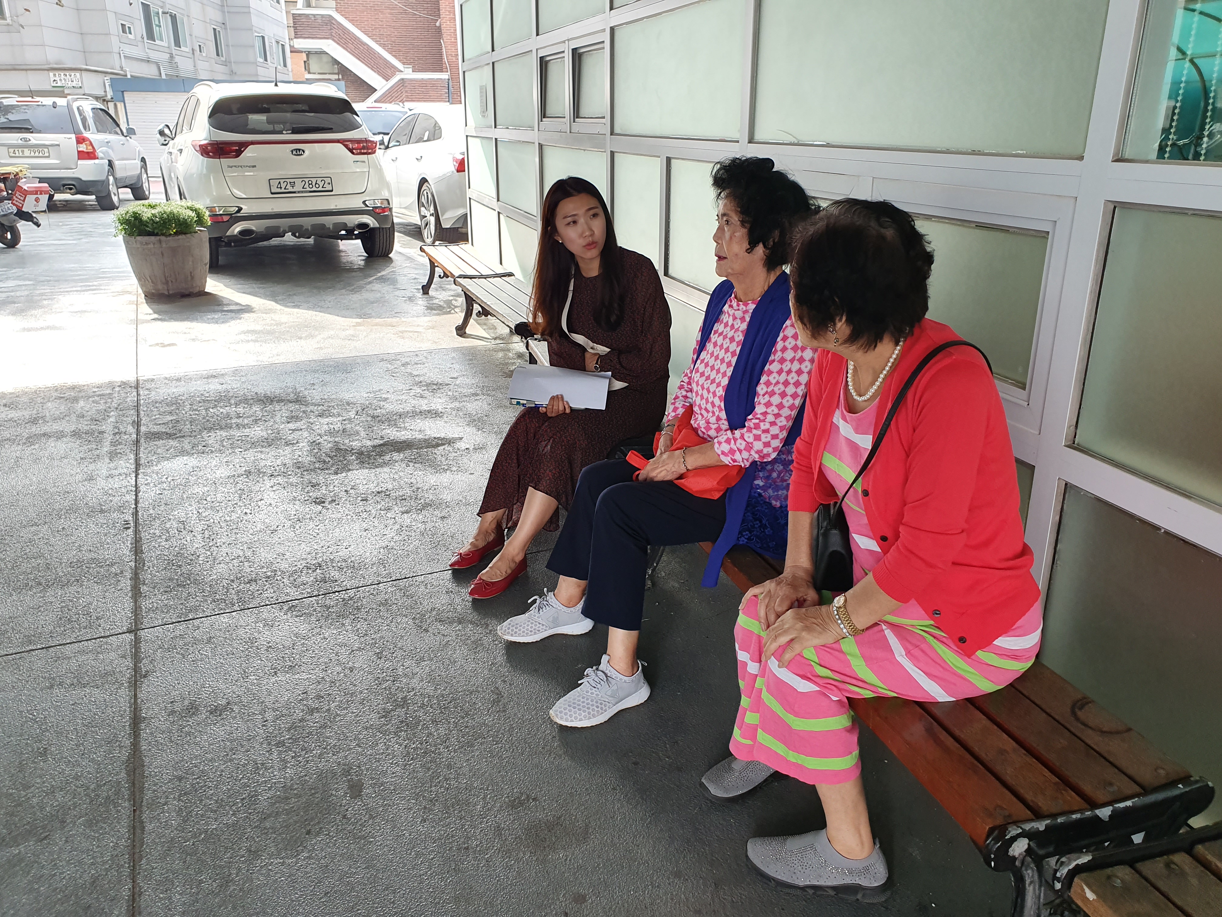 밖으로 나와 어르신들과 이야기 나눴습니다.
