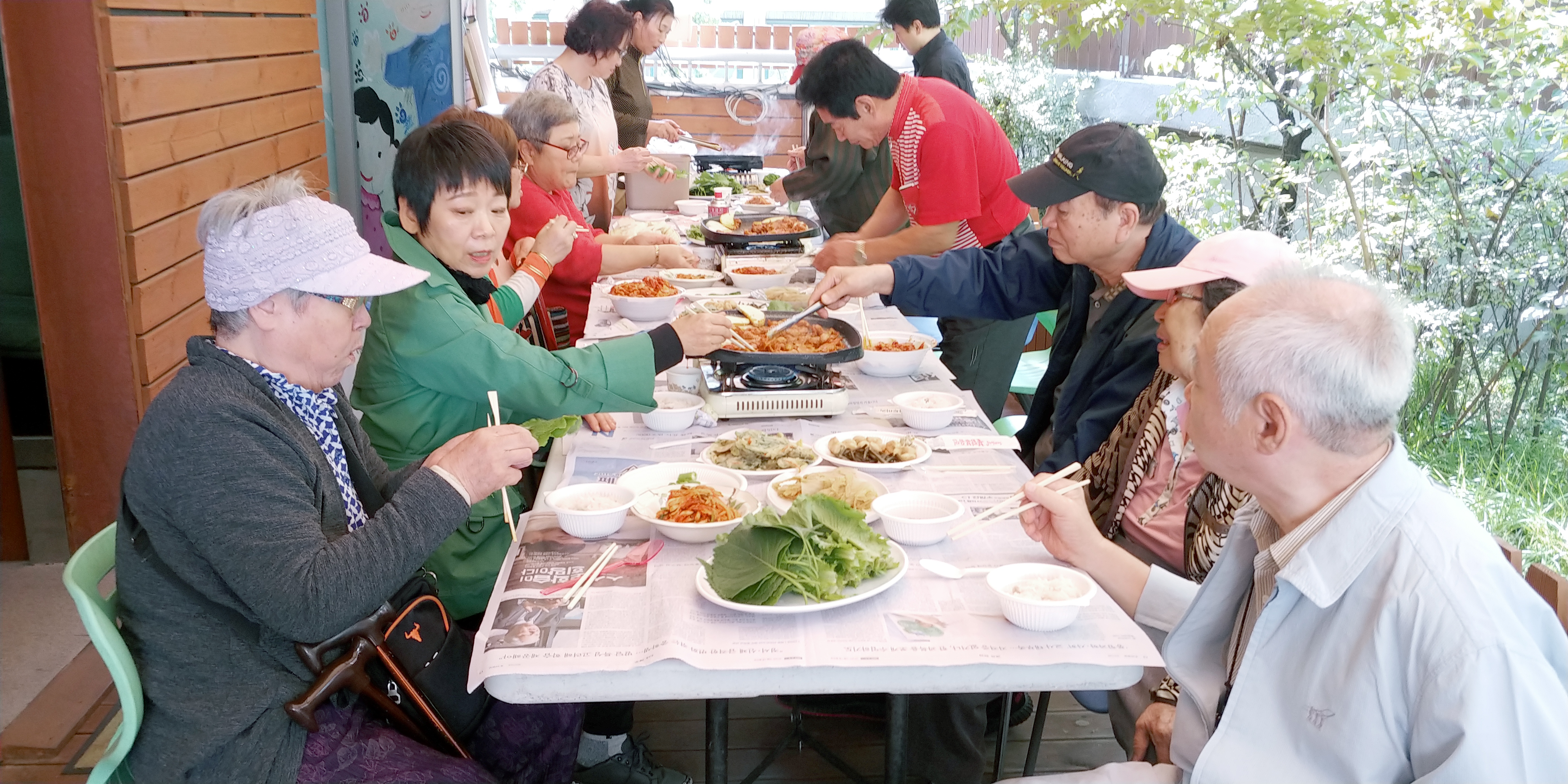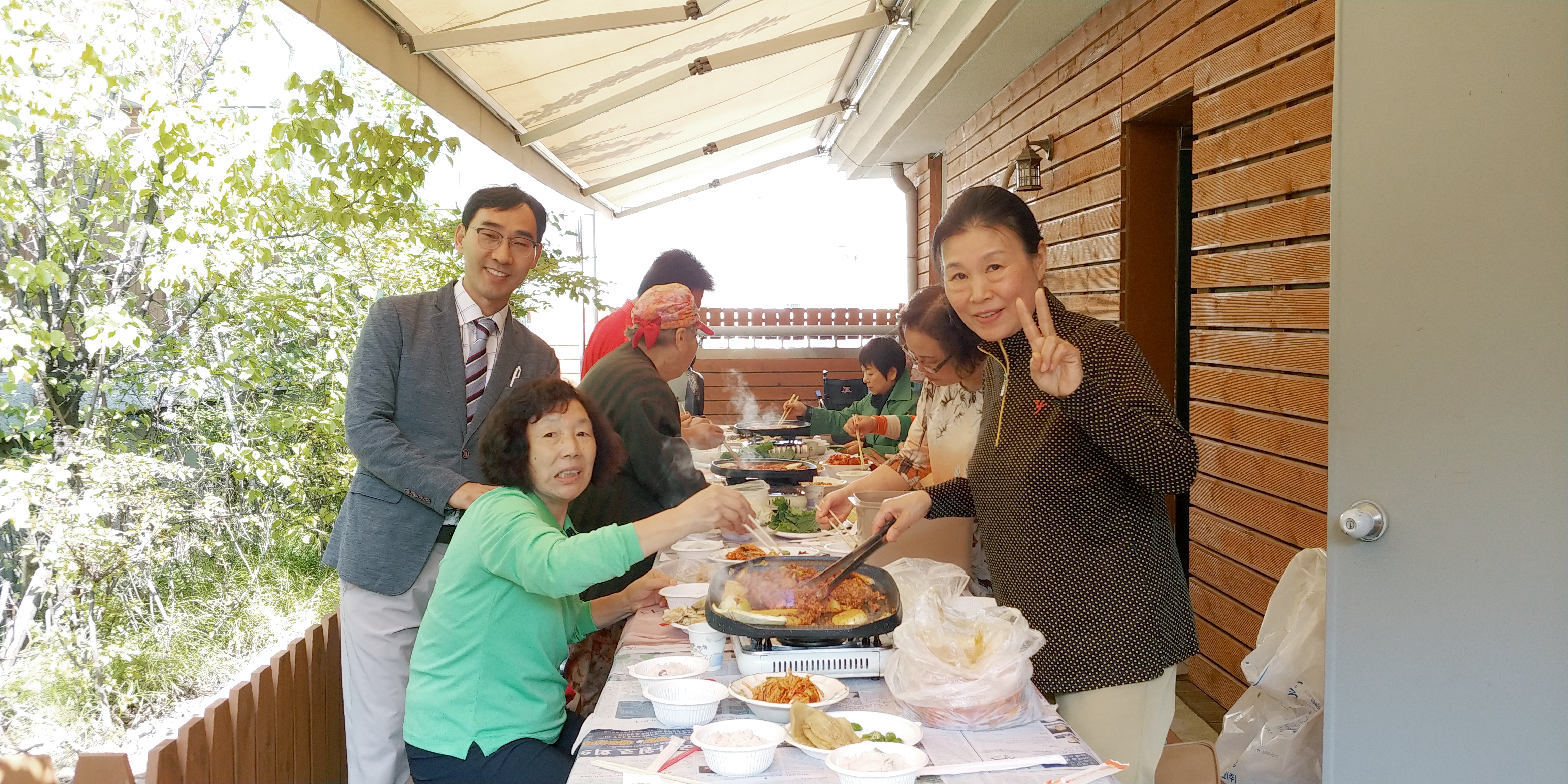 점심은 모든 회원들이 복지관 본관 3층에 야외 테라스에 마련된 식탁에서 함께 하기로 하였습니다.
