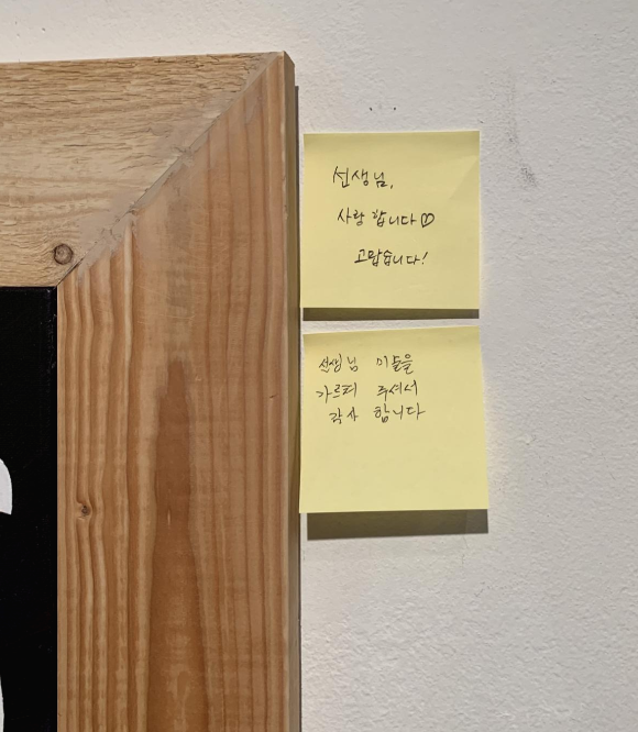작품 감상이 끝나고 작가의 한 마디를 적어 작품 옆에 붙여두었습니다.