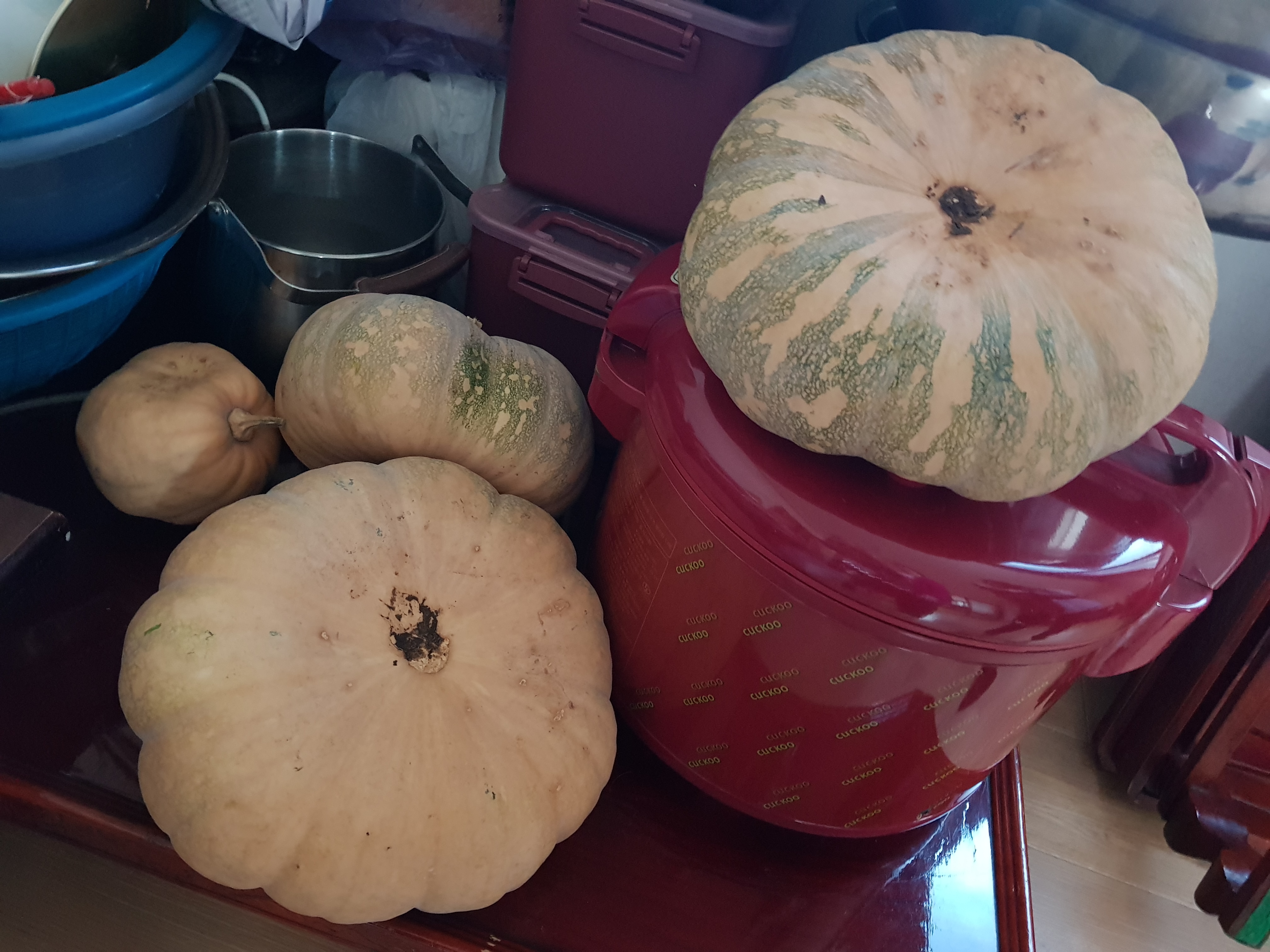 아이들 호박죽 이야기 들으시곤 큰 호박 2개를 선물해주셨습니다.