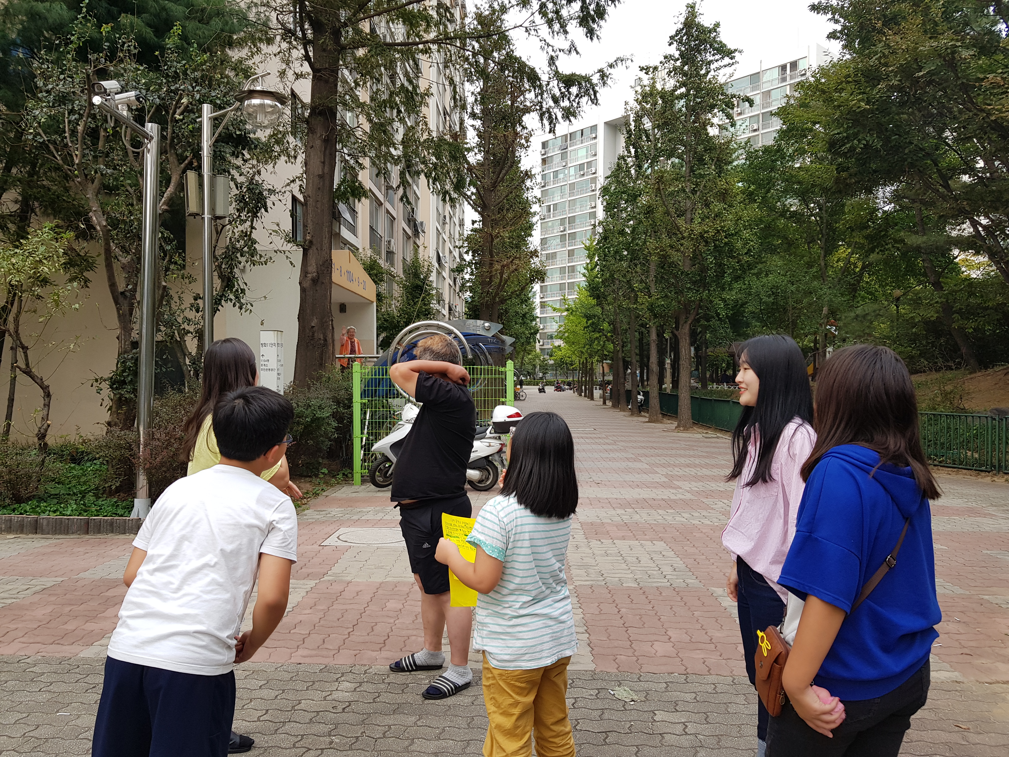 이상관 아저씨와 전화로 약속을 잡고 1104동 앞에서 만났습니다.