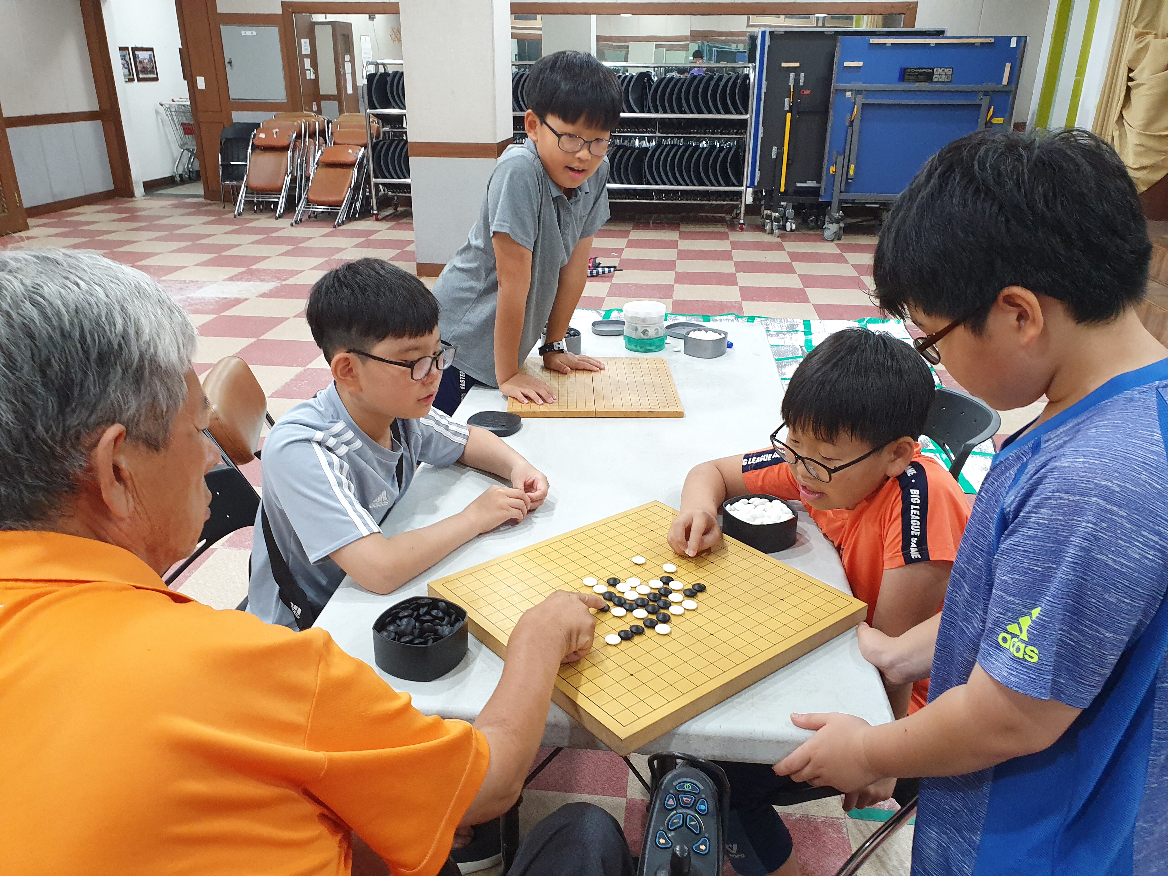 오목과 장기는 6명의 아이들과 함께 이루었습니다.