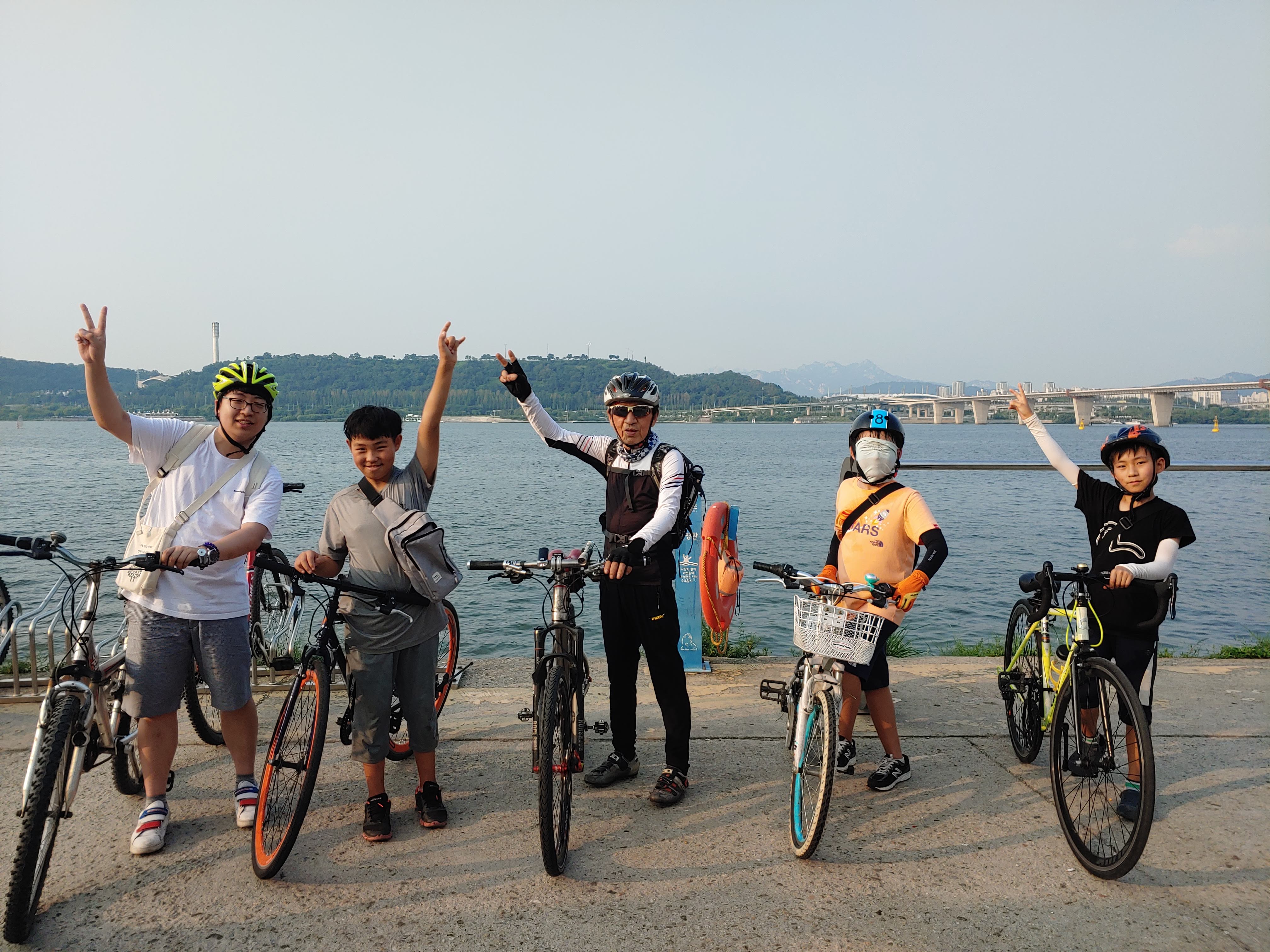 4명의 아이들과 뜨거운 여름 여의도로 자전거 여행을 다녀왔습니다.