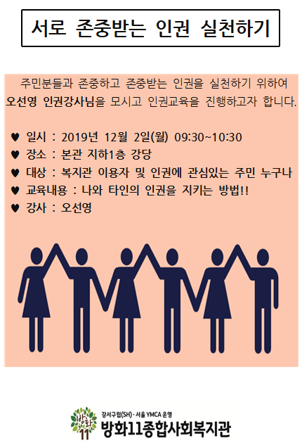방화11종합사회복지관에서는 아래와 같이 인권교육을 진행합니다.