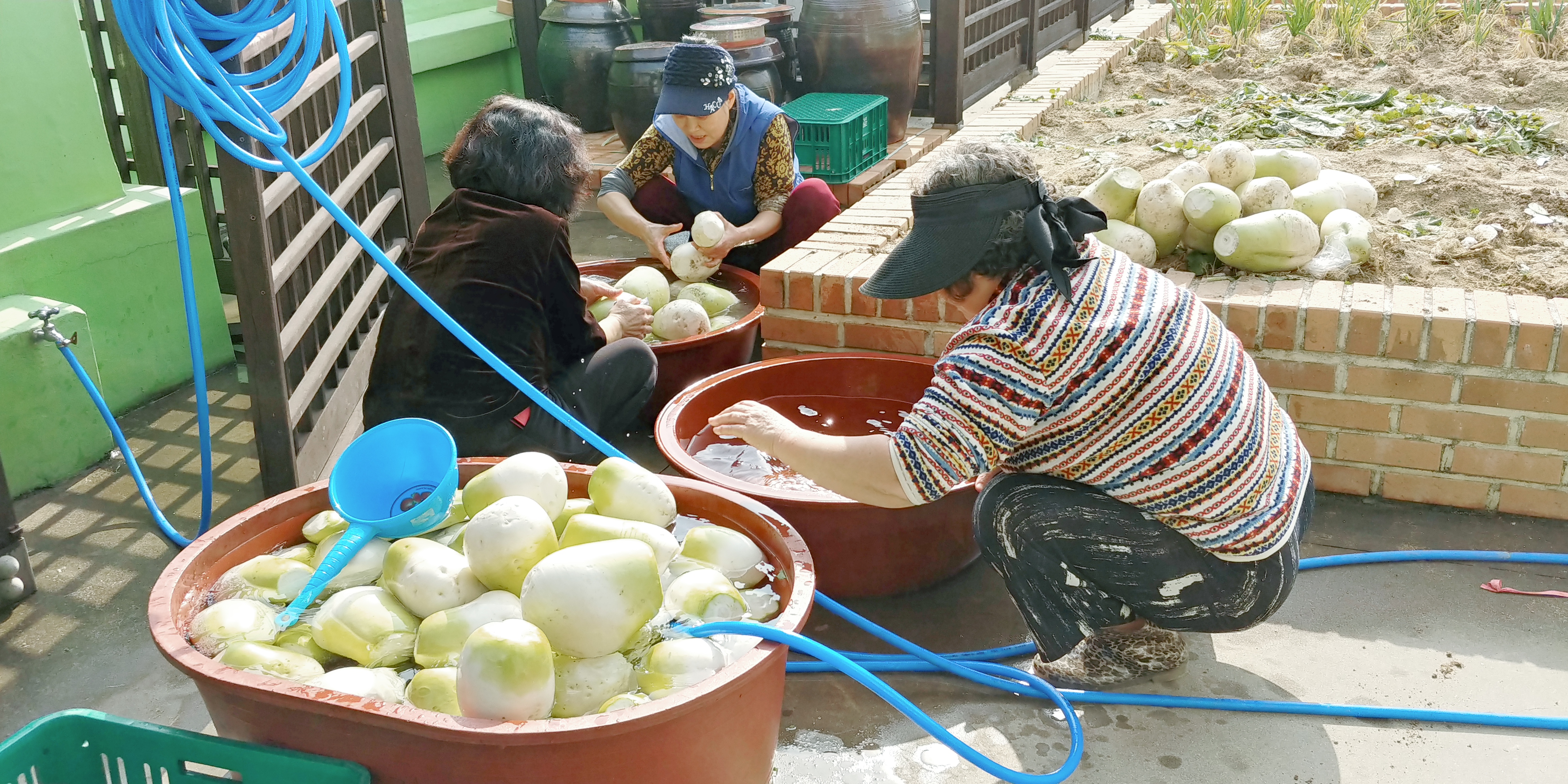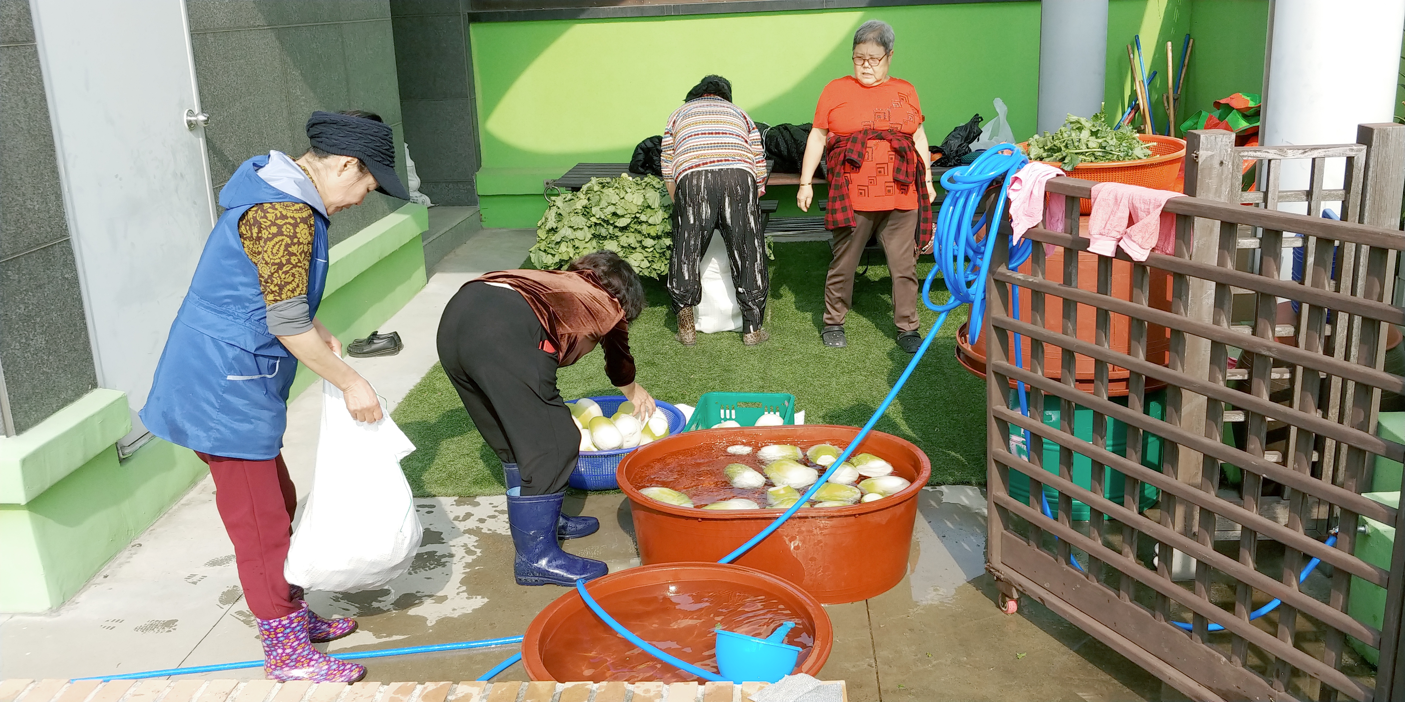 "마을 어르신과 장애인들에게 나눠 드릴 김장을 준비하고 있는 여러분들은 지금 이 순간