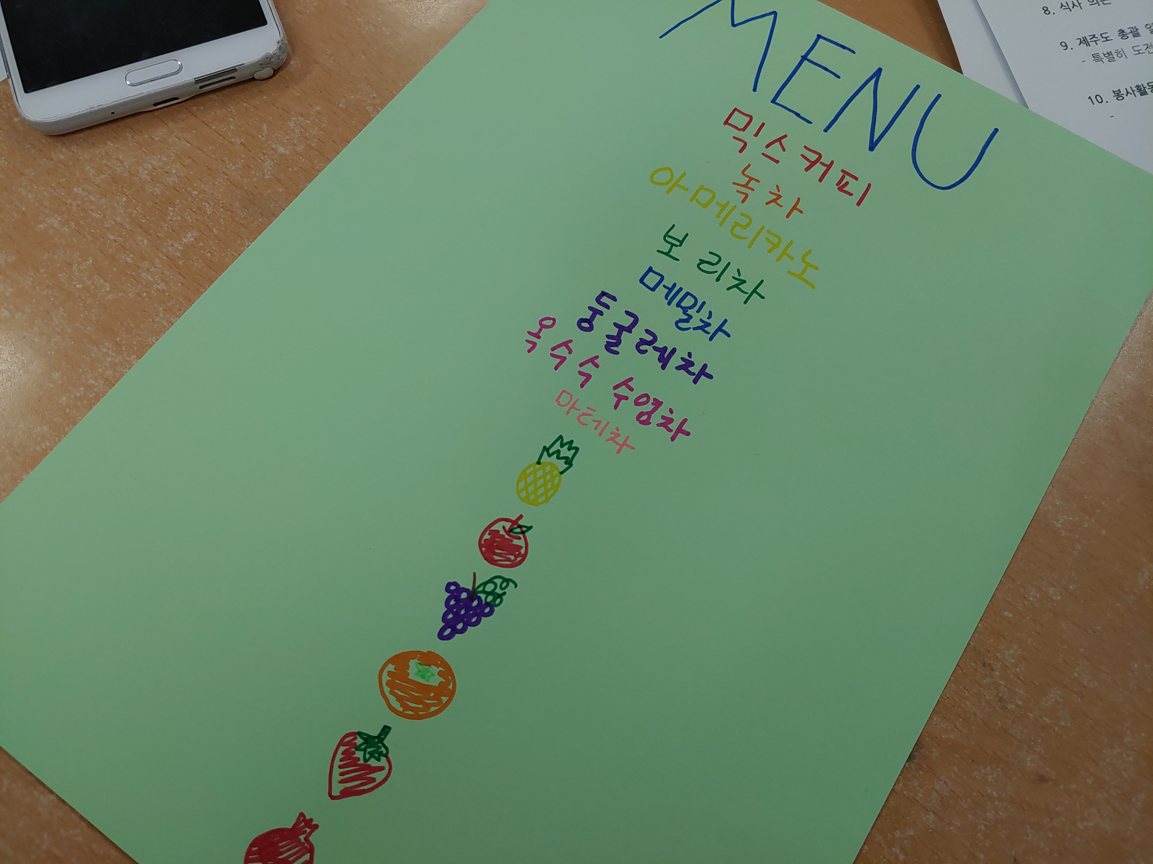 직접 메뉴판을 만들었습니다.