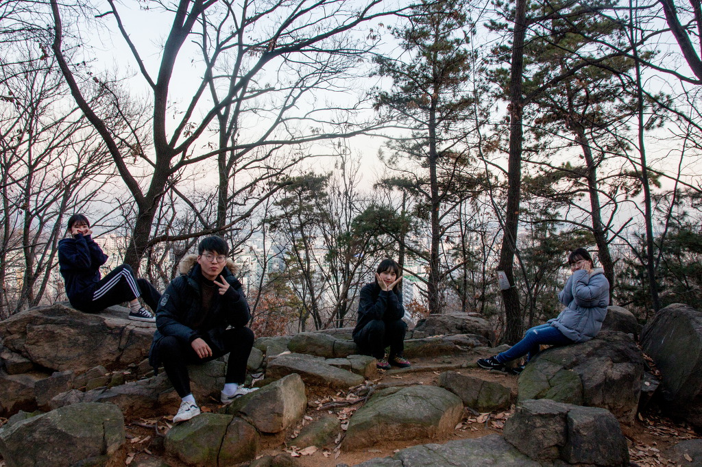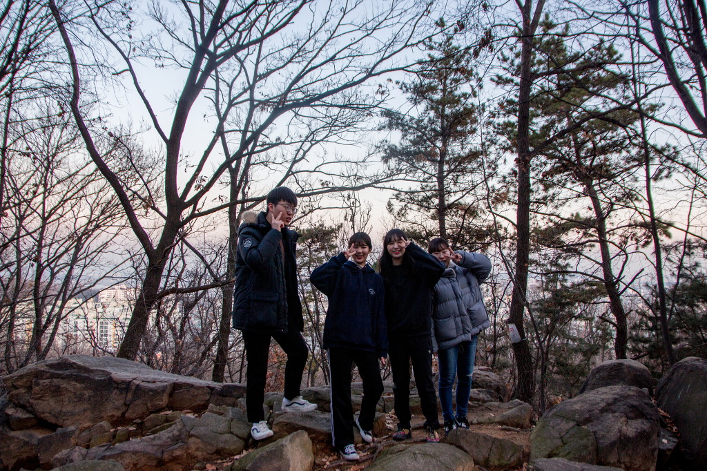 어두워지는 산 속에서 다함께 포옹인사했습니다.