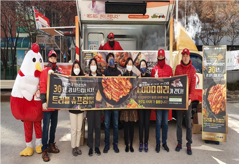 그 덕분에 출시된 치킨을 복지관 이용하는 주민들과 직원들이
