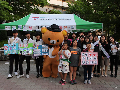 부스를 설치하고 직원들과 봉사자들이 함께 했습니다. 지나가는 주민들에게 행사 홍보하며 활동 독려했습니다.