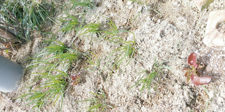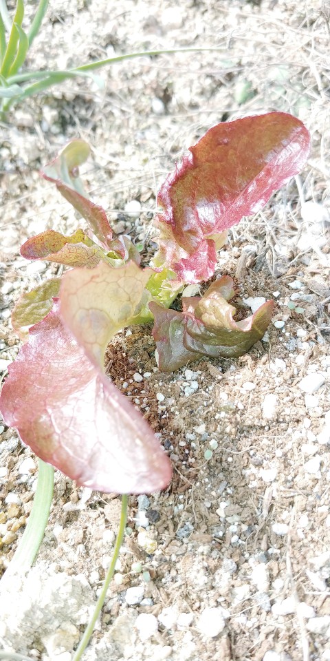 지난 가을 어미 상추 씨앗이 떨어져서 자연적으로 자라난 새끼들이랍니다.