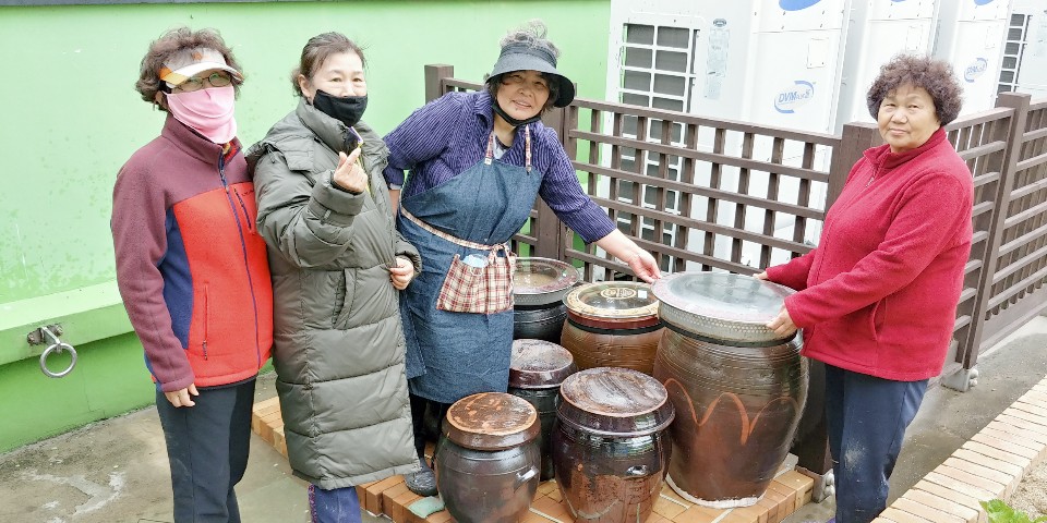전통된장을 담그기 위해 이런 저런 모양으로 함께 마음을 모두어 주신