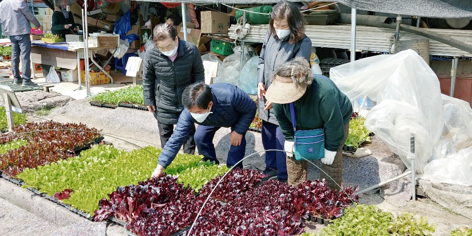 벌써 각종 봄채소 모종들이 먹음직스럽게 잘 자라고 있네요.