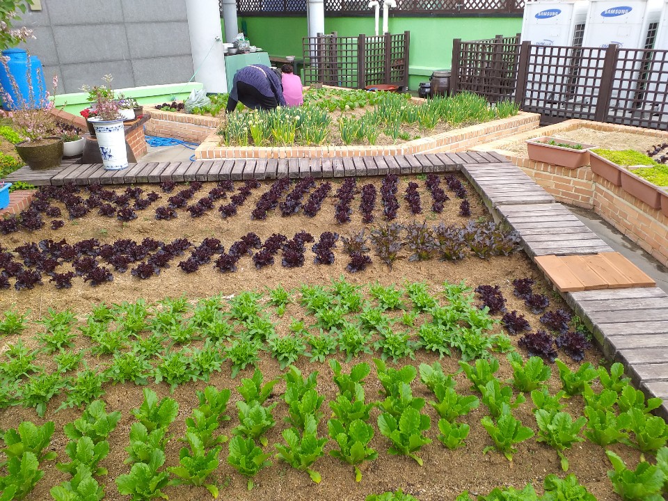 복지관 별관 옥상에 조성된 싱싱텃밭입니다.