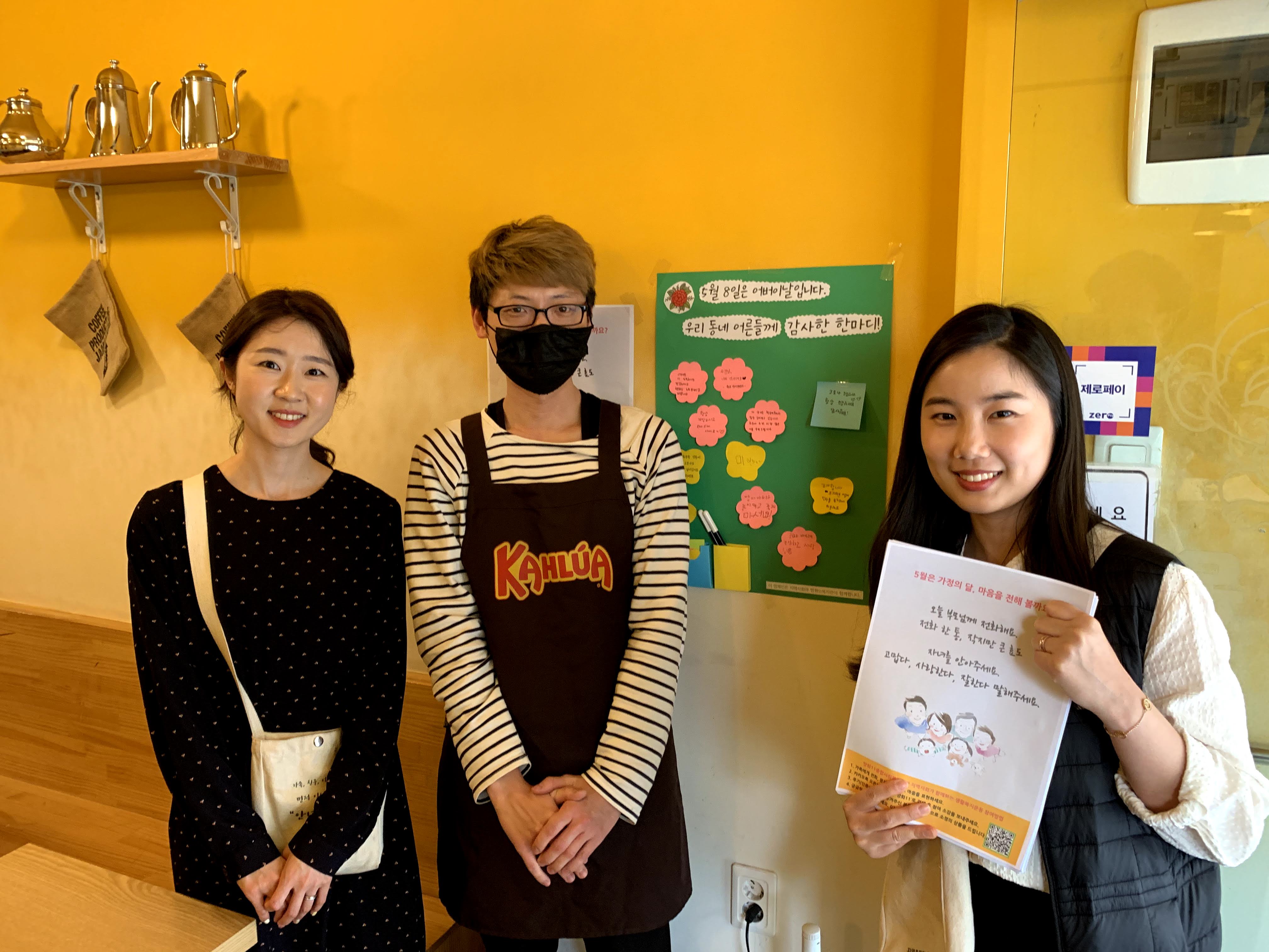 “그럼요, 고맙습니다. 가게에 들어오는 손님이 이 붙임쪽지판을 보고 마음이 따뜻하고 부드러워지기를 바라요. 이를 구실로 사장님과 손님, 가족와 이웃이 서로 감사한 마음을 표현하기를 바라요. 함께해주셔서 고맙습니다.”