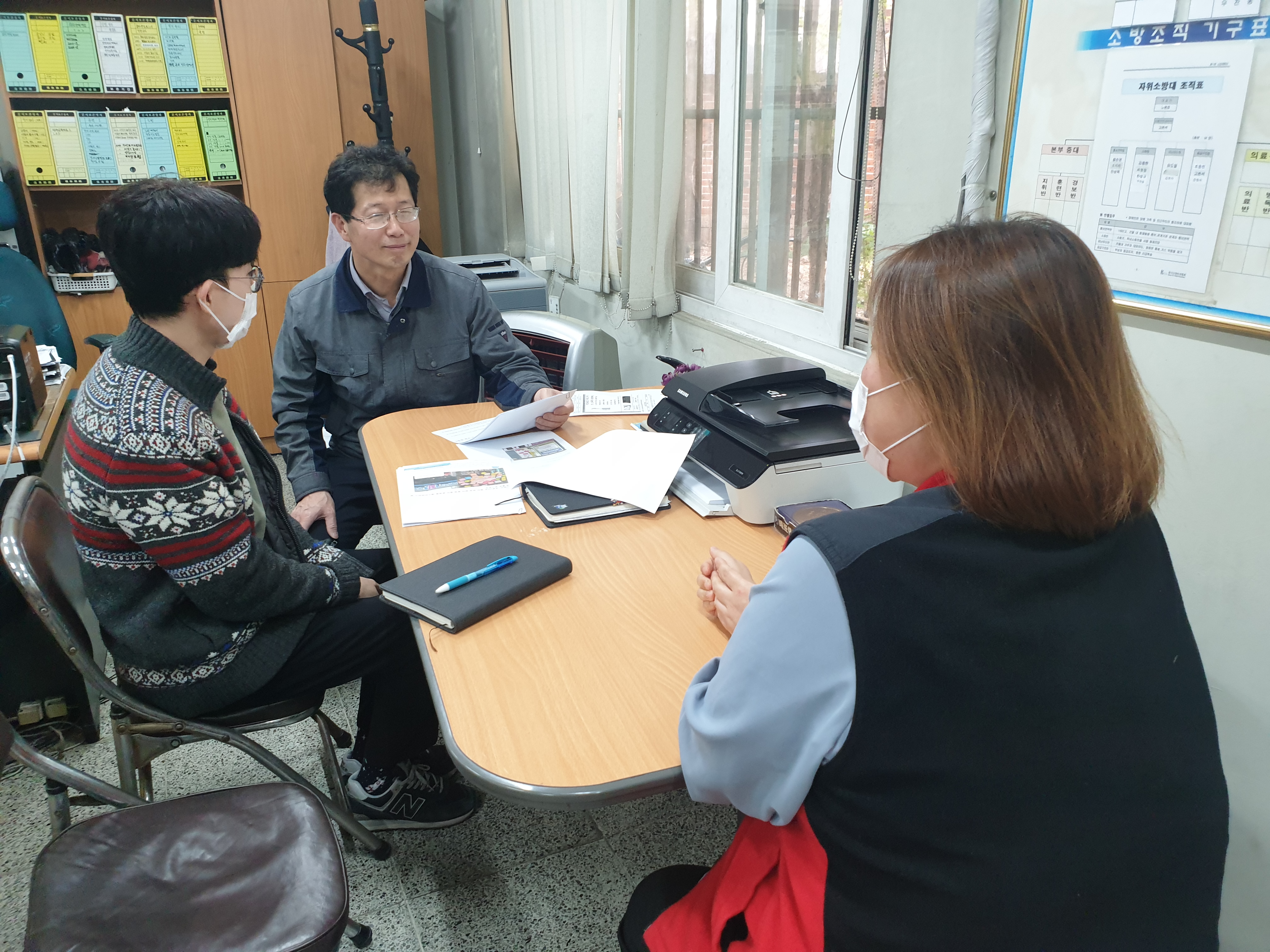 소장님께서 반갑게 맞아주셨습니다. 복지관과 12단지가 그동안 어떻게 함께 협력해왔는지 설명했습니다. 앞으로 잘 부탁드린다고 말씀드렸습니다. 생활복지운동의 취지와 과정도 설명하니 좋은 내용이라며 승강기에 붙일 수 있도록 허락해주셨습니다.
