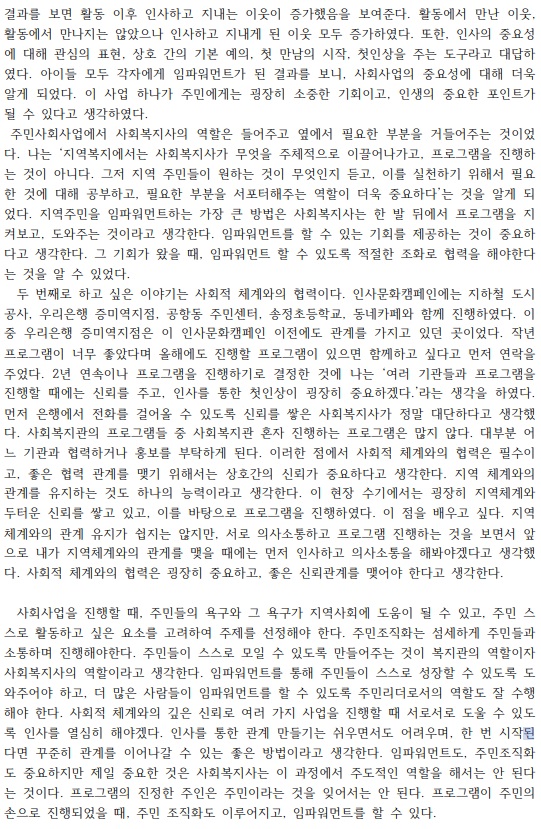 마을인사생동사업 연간사업보고서를 읽고