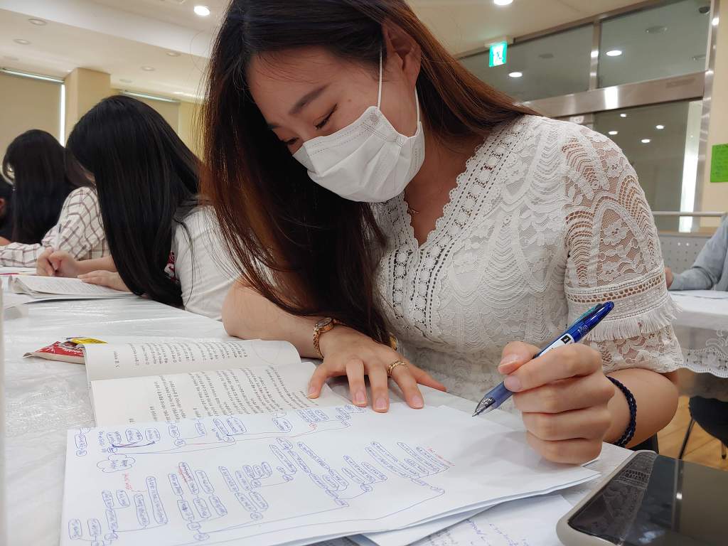 같은 방식으로 2인 1조로 서로 설명하며 줄거리를 말했습니다.