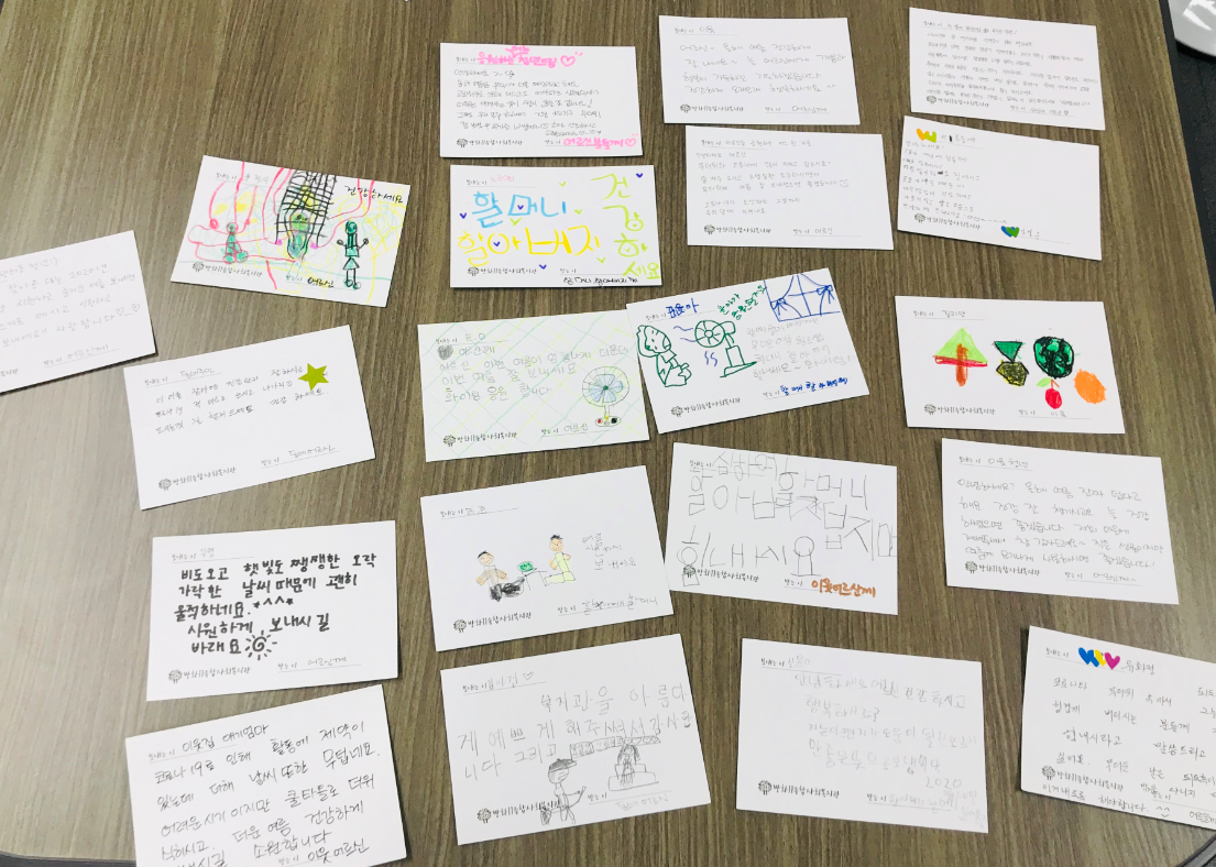안부인사가 담긴 엽서가 복지관에 도착했습니다.