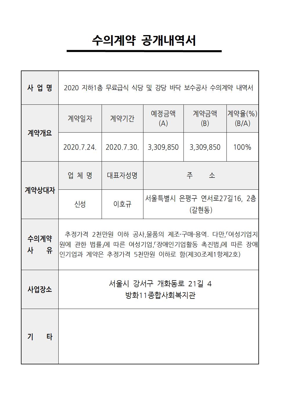 2020 본관지하1층 식당 및 강당 바닥공사 수의계약 공지