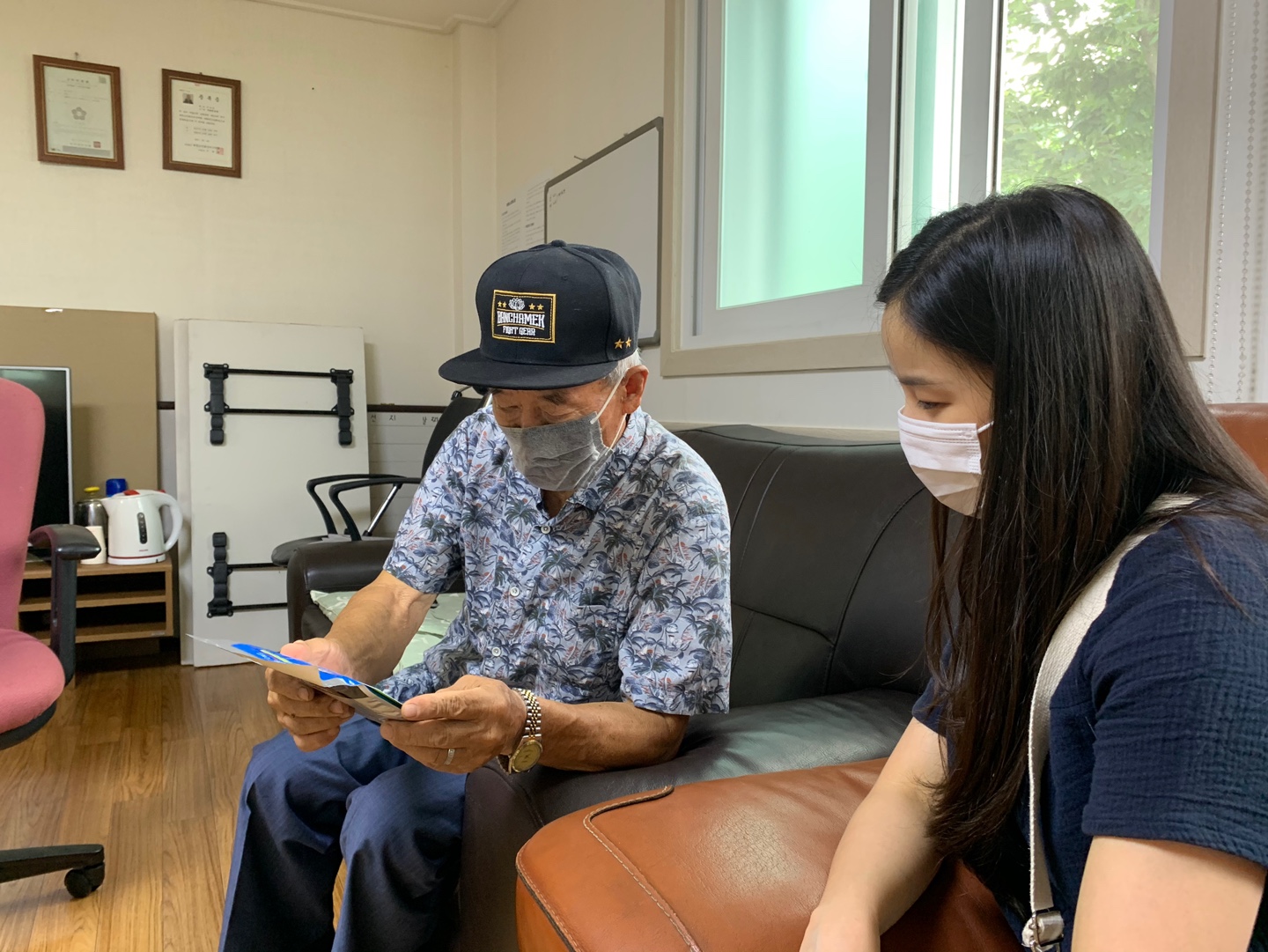 무더위 생활복지운동으로 어르신들에게 쿨타올과 엽서를 전달하고자 개화경로당을 방문했습니다.