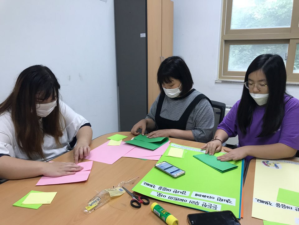 생활복지운동 첫 모임날, 포스트잇과 볼펜을 넣을 상자를 만들어야 했습니다.
