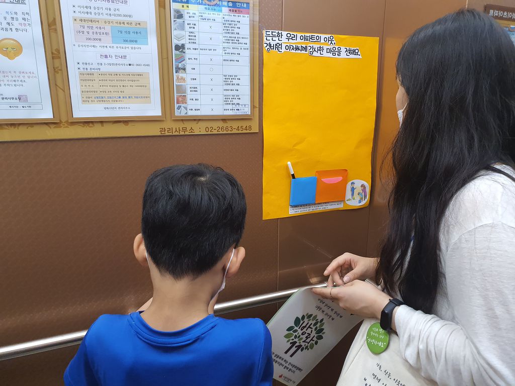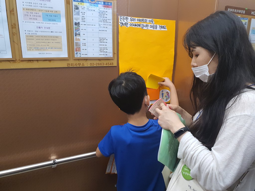 주민 분들이 써준 포스트잇을 모아 경비원아저씨께 전달하기가 최종 과정입니다.