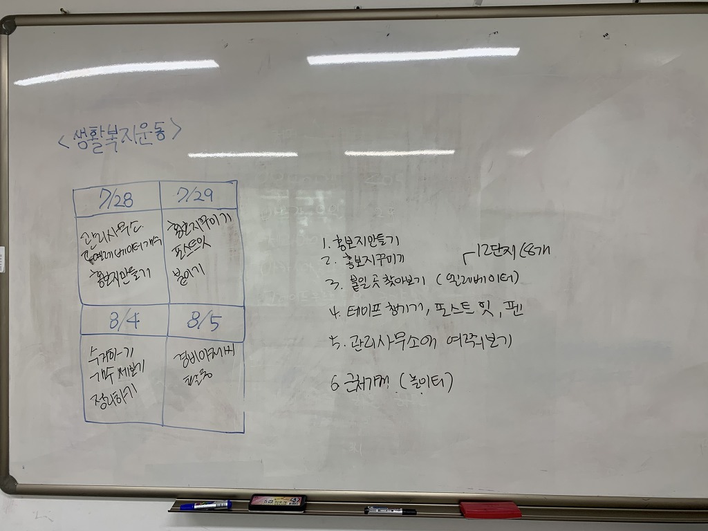 지난 가정의달 생활복지운동에 참여했다고 합니다.