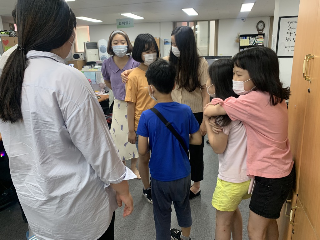 아이들이 마스크를 끼고 있어 표정은 잘 보이지 않습니다.