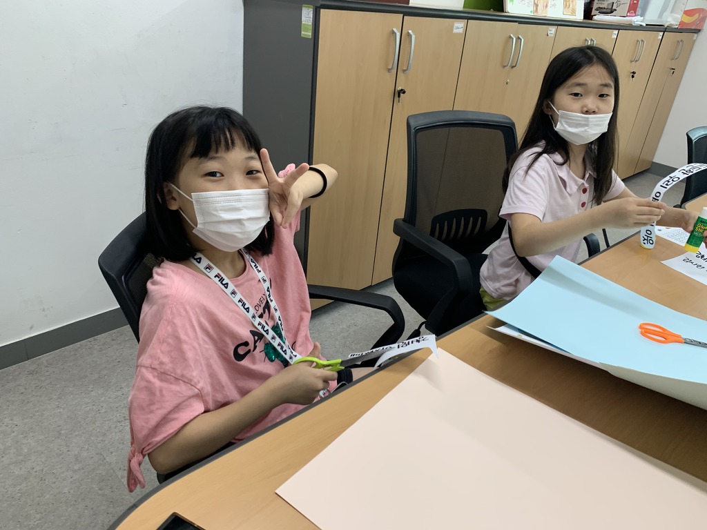 뒷정리를 하고 가위와 풀을 빌려주신 사무실을 아이들과 함께 다시 찾습니다.
