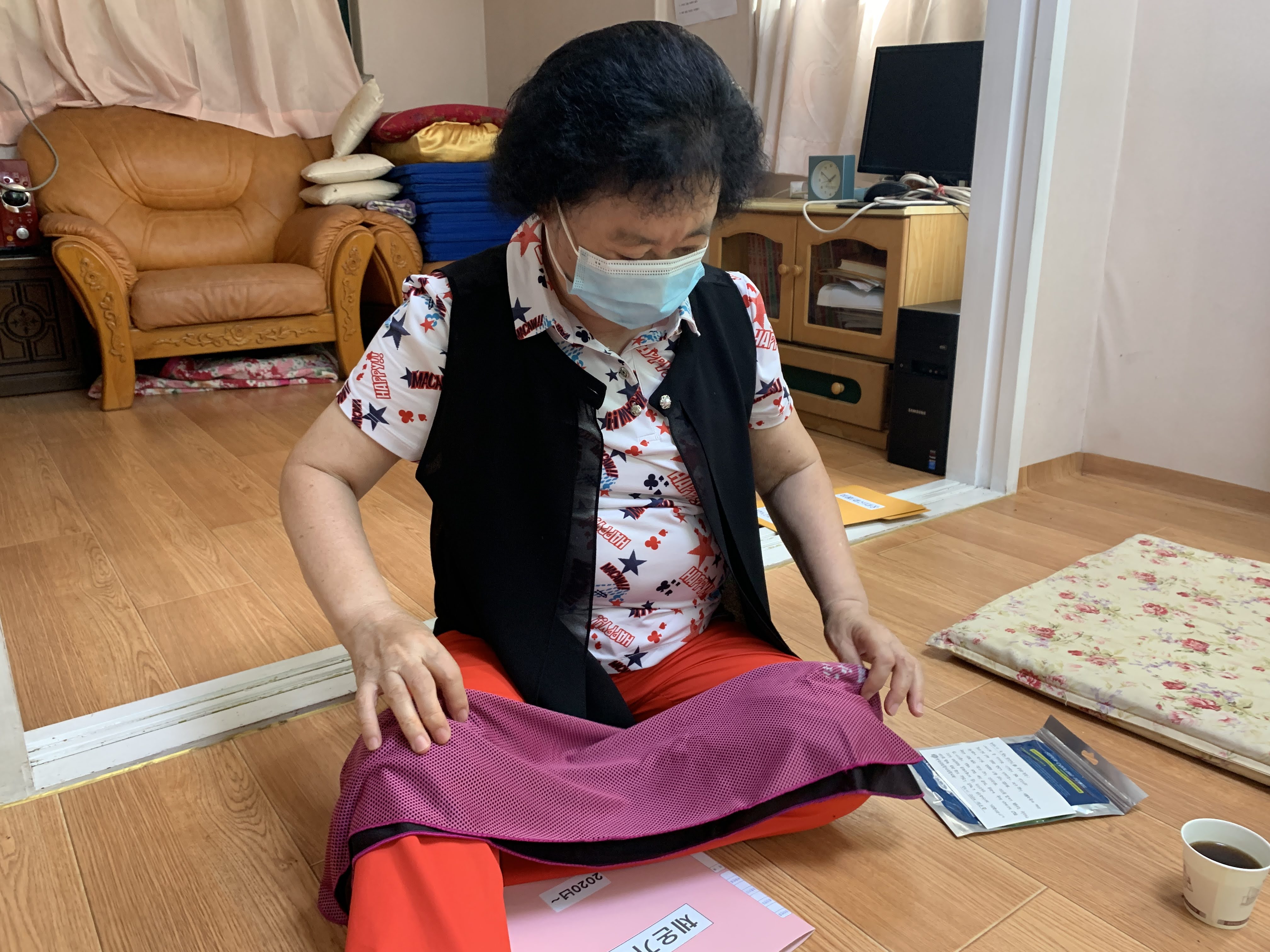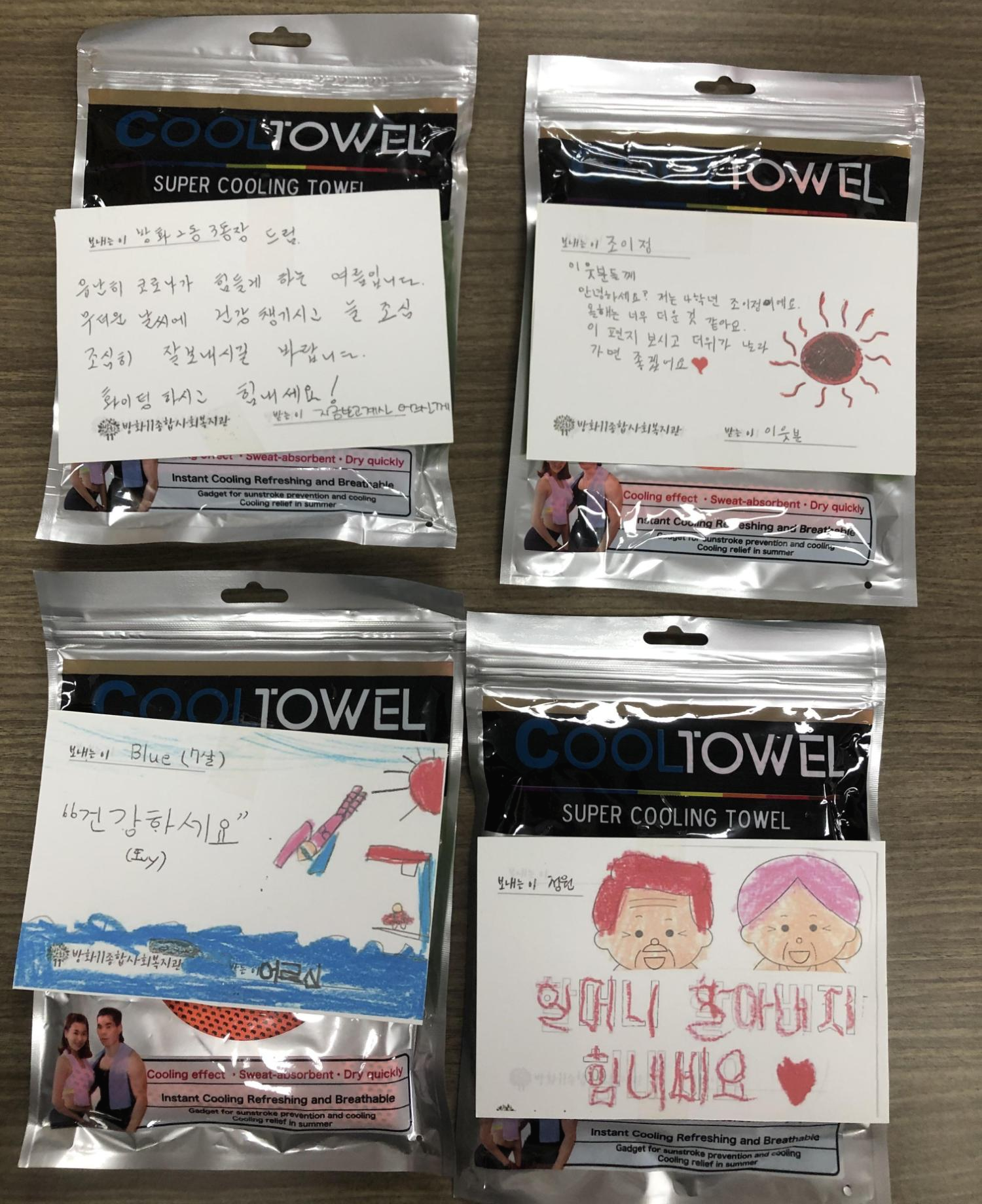 어르신들과 이웃들에게 쿨타월과 엽서를