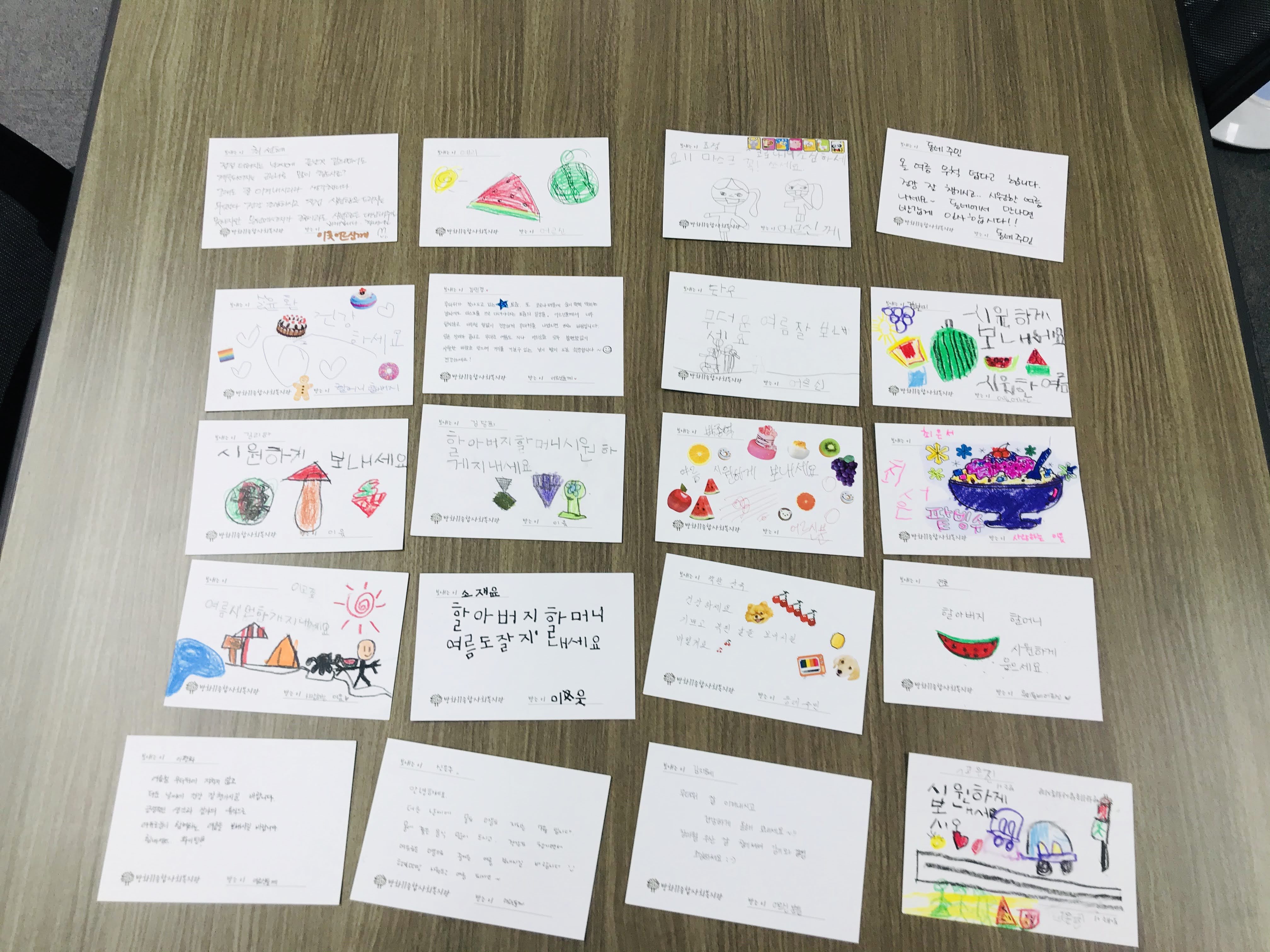 어르신들과 이웃들에게 쿨타월과 엽서를