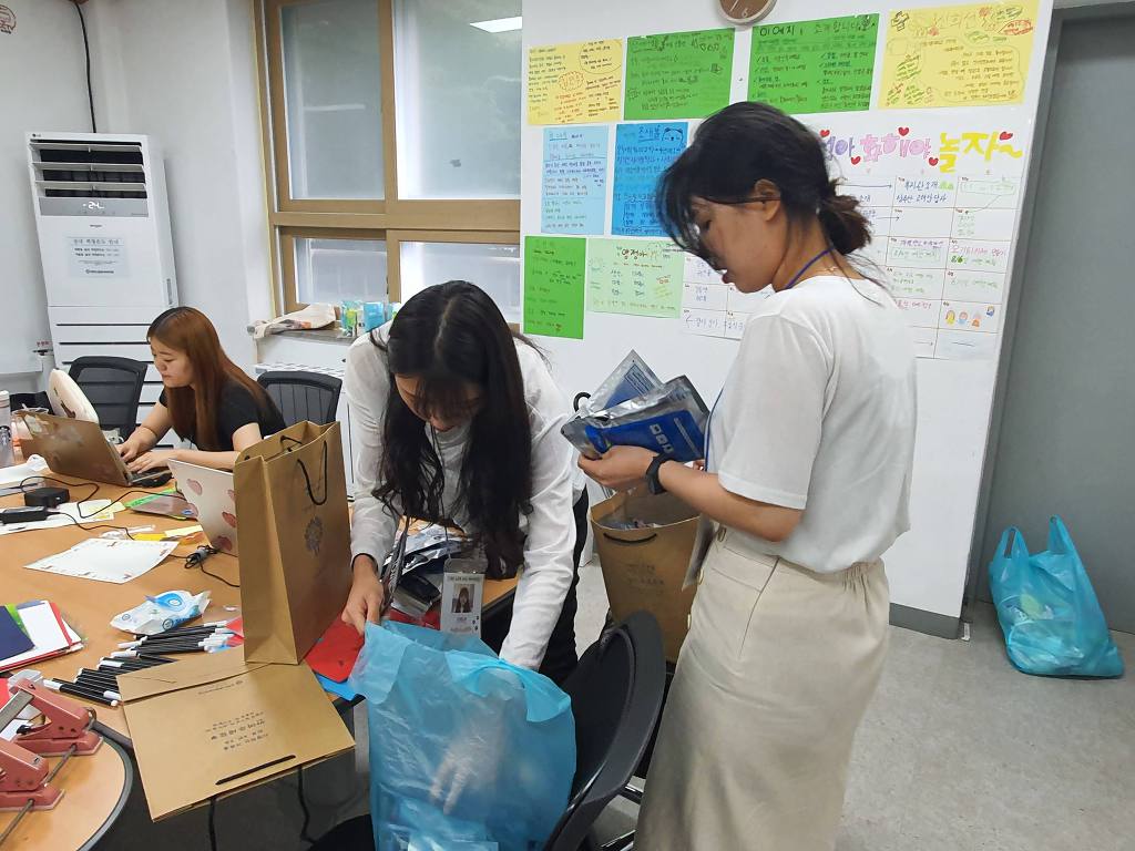 반면에 펜이 없어지거나 홍보지 종이가 너덜너덜 하면 아이들이 시무룩해합니다.