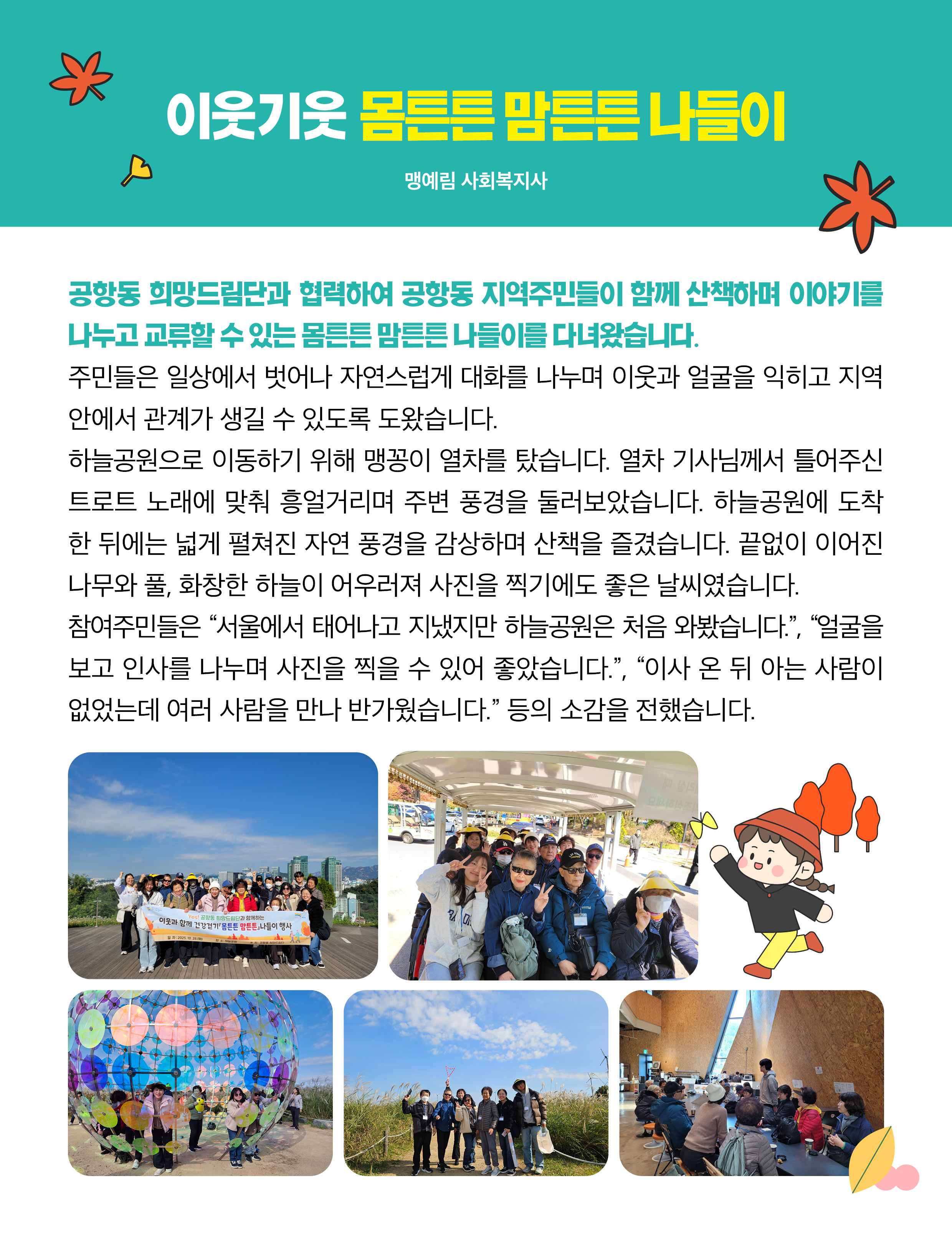 주소 : 우)07611 서울시 강서구 개화동로 21길 4(SH공사 11단지 내) 방화11종합사회복지관